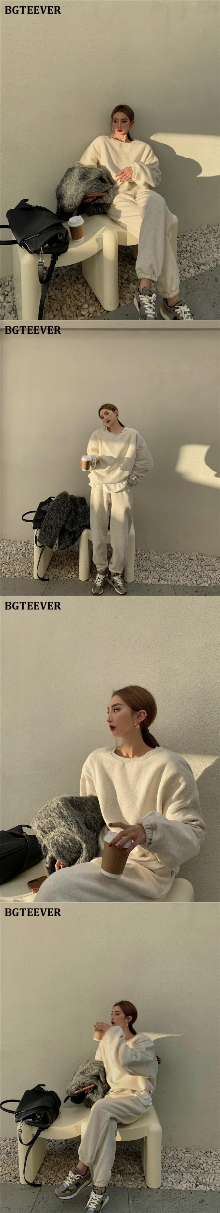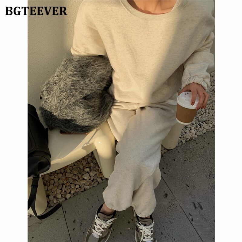 【新作】【送料無料】 BGTEEVERルースウィミン2ピースセットオーバーサイズOネックスウェットシャツ&エラスティックロングパンツ2021春の太いトラックスーツ 伸縮 スプリング 春物 12b178348976521