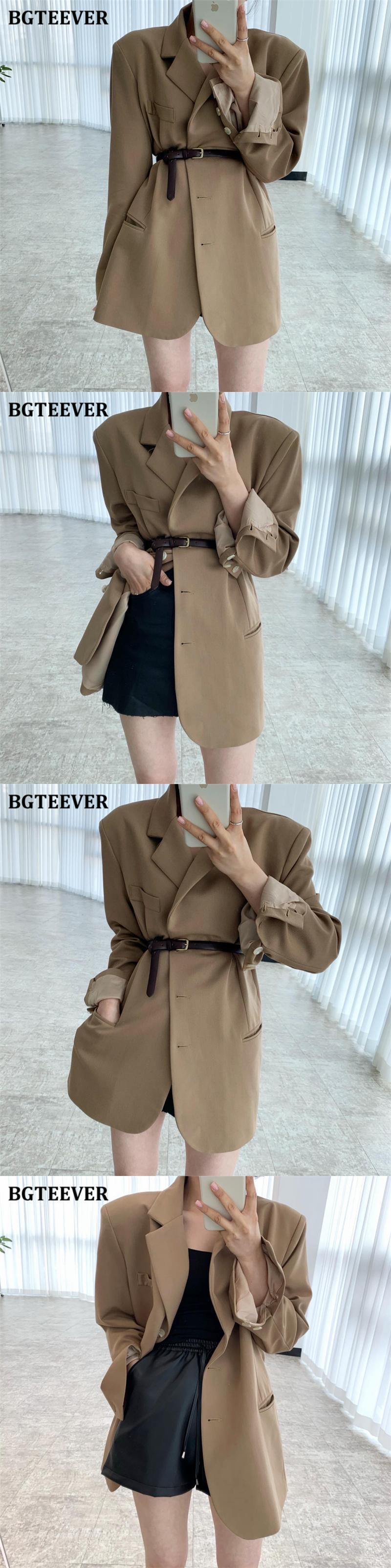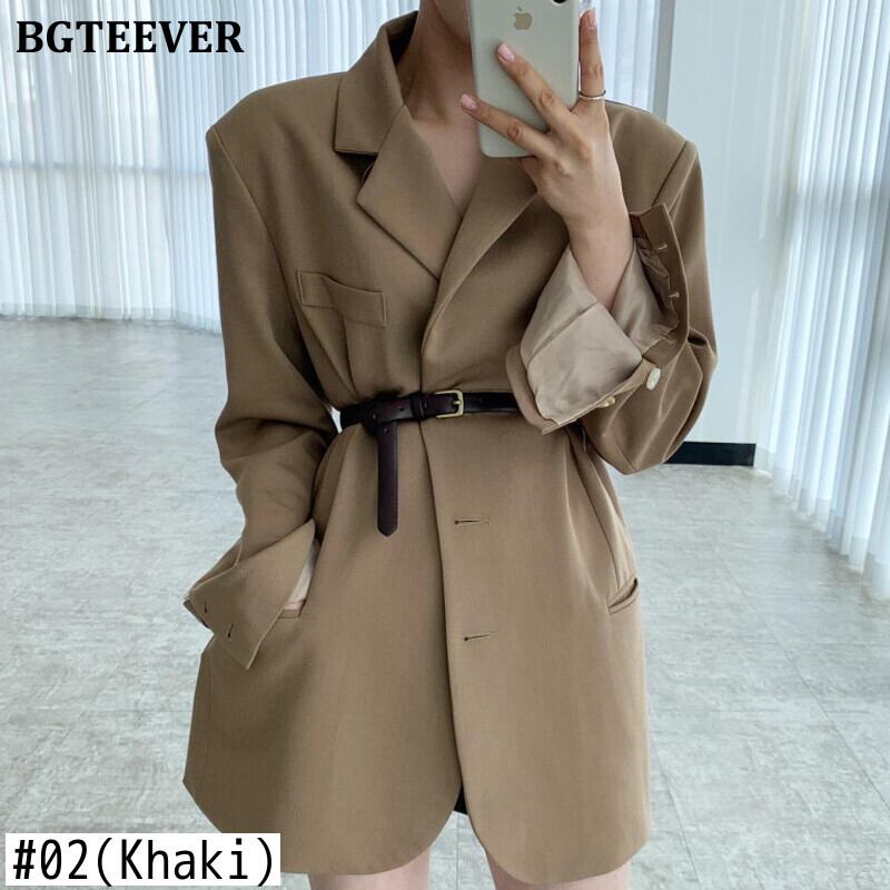 【新作】【送料無料】 BGTEEVER春シングルブレスト女性スーツジャケットスタイリッシュな長袖ベルトルースブレイザー2021コート ロング スプリング 春物 ハーネス 12b153620043476