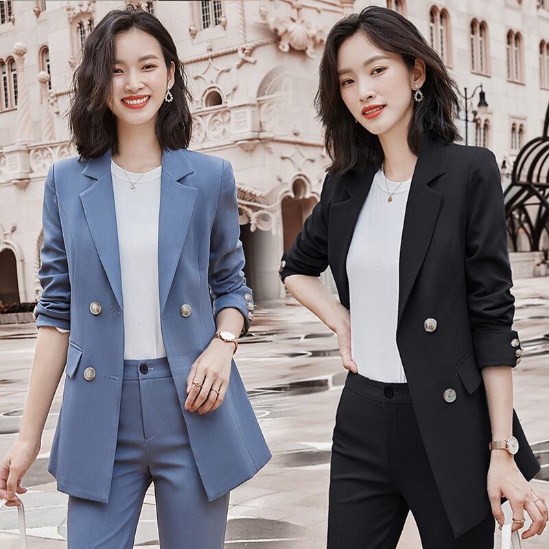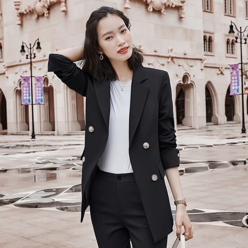 【新作】【送料無料】 ブラックダブルブレストロングスーツパンツ2020秋冬新作レディースプロスーツツーピーススーツ-アリババ オータム 秋物 ウィンター 冬物 12b346946551465