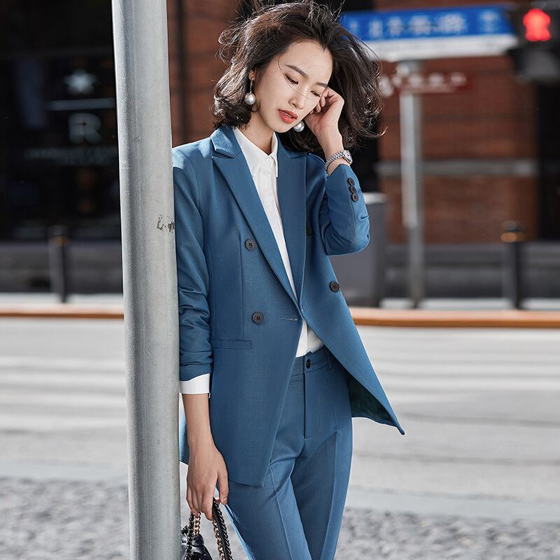 【新作】【送料無料】 ブルーミッドレングスプロスーツパンツ2020秋冬新作スモールフレグランススタイルスーツジャケット9点パンツ-アリババ オータム 秋物 ウィンター 冬物 12b350712852223
