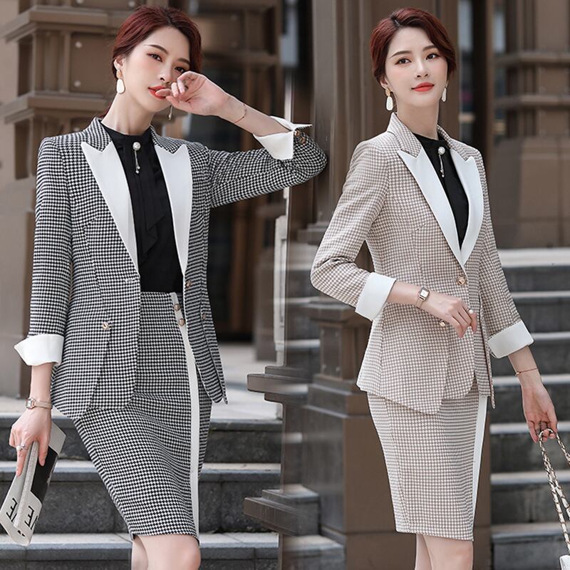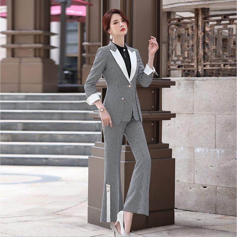 【新作】【送料無料】 千鳥格子パターンハイウエストスリムスモールスーツパンツレディース2020秋新プロフレアパンツツーピースセット-アリババ ハイウェスト レッド オータム 秋物 12b366590255522