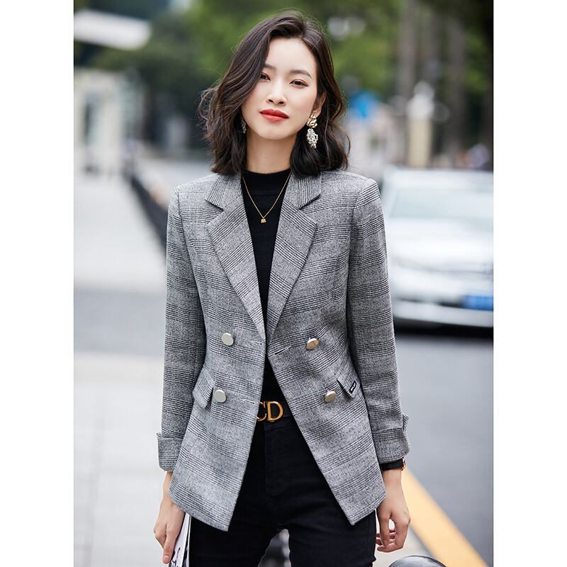 【新作】【送料無料】 2020年秋新しいダブルブレストチェック柄スモールスーツジャケットレディーススリムスリムショートスーツカジュアルジャケット-アリババ 12b381111636313
