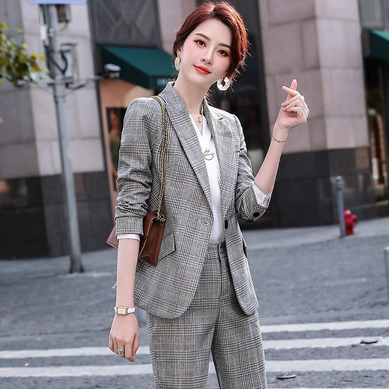 【新作】【送料無料】 2020年秋冬の新しい市松模様のスモールスーツレディーススーツパンツバージョンのスモールフレグランススーツファッションビジネスウェアツーピースセット-アリババ レッド オータム 秋物 ウィンター 冬物 12b370332344417