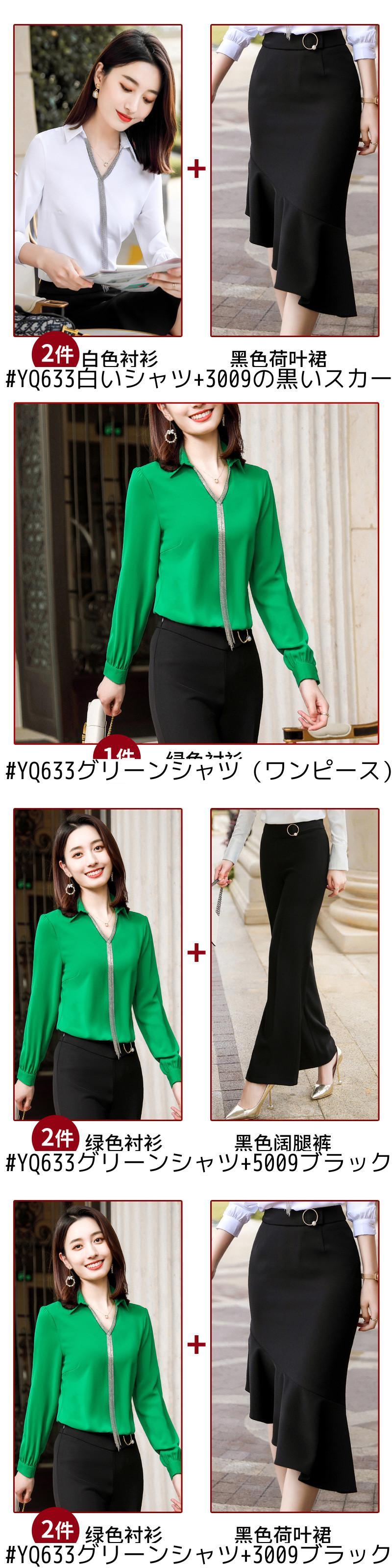 色:YQ633ホワイトシャツ(ワンピース),YQ633ブラックシャツ(ワンピース),YQ633赤いシャツ(ワンピース),YQ633赤シャツ+5009黒パンツツーピーススーツ,YQ633白シャツ+5009黒パンツツーピーススーツ,YQ633黒シャツ+5009黒パンツツーピーススーツ,YQ633黒シャツ+3009黒スカートツーピーススーツ,YQ633赤いシャツ+3009の黒いスカートのツーピーススーツ,YQ633白いシャツ+3009の黒いスカートのツーピーススーツ,YQ633グリーンシャツ(ワンピース),YQ633グリーンシャツ+5009ブラックパンツツーピーススーツ,YQ633グリーンシャツ+3009ブラックスカートツーピーススーツ