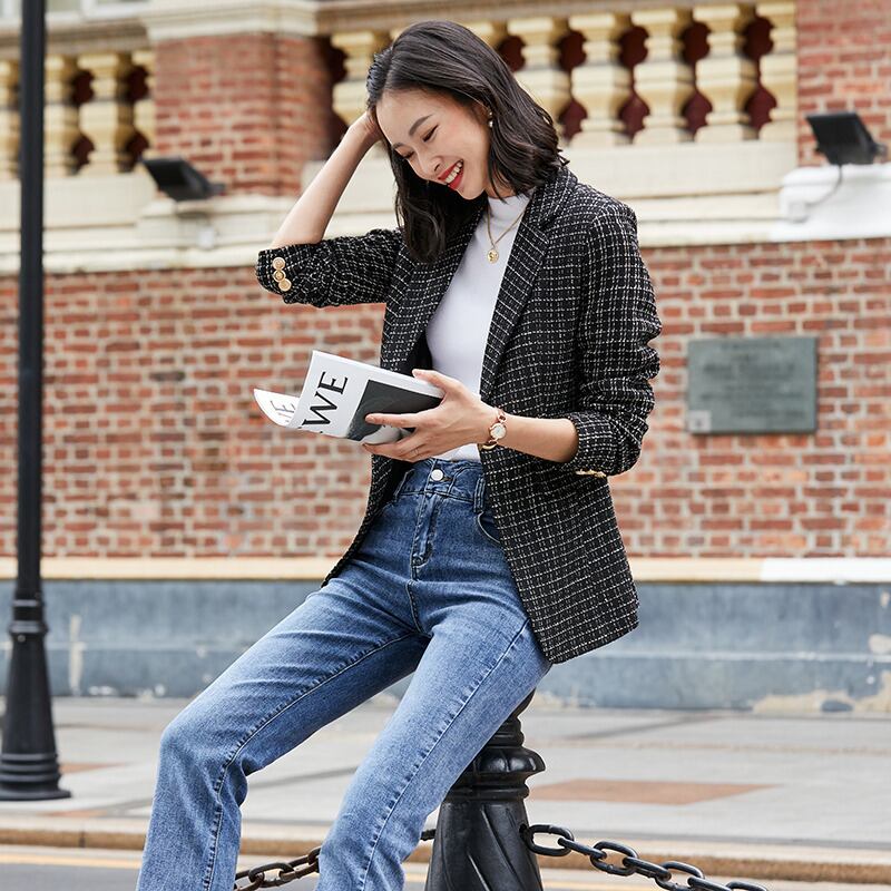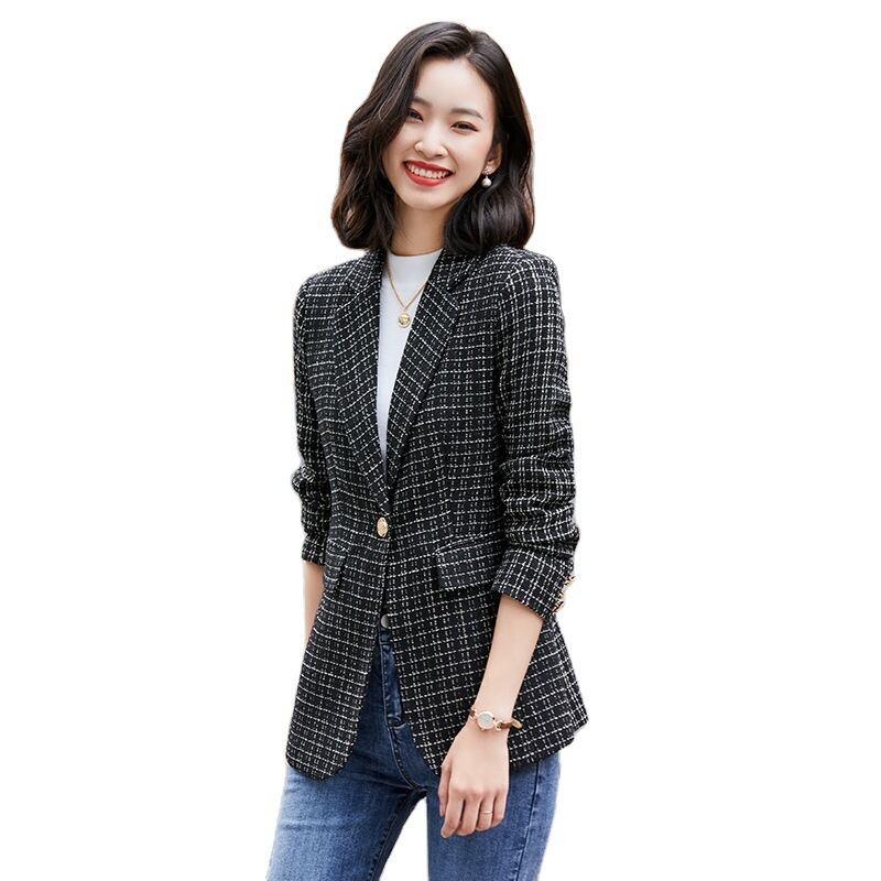 【新作】【送料無料】 黒のチェック柄のスモールスーツジャケット2020秋と冬の新しい女性のウエスタンスタイルの薄いプロスタイルのスモールフレグランススーツ-アリババ ブラック オータム 秋物 ウィンター 冬物 12b398100685185