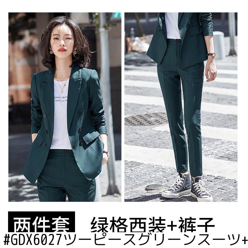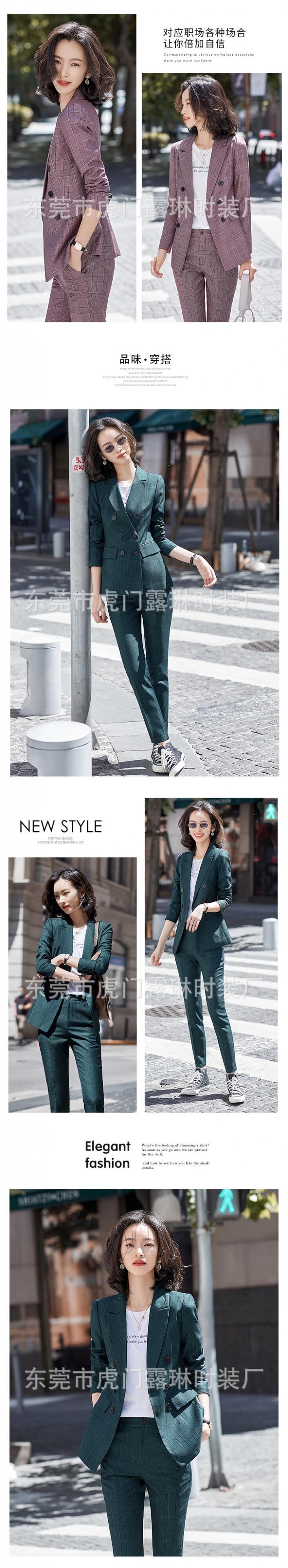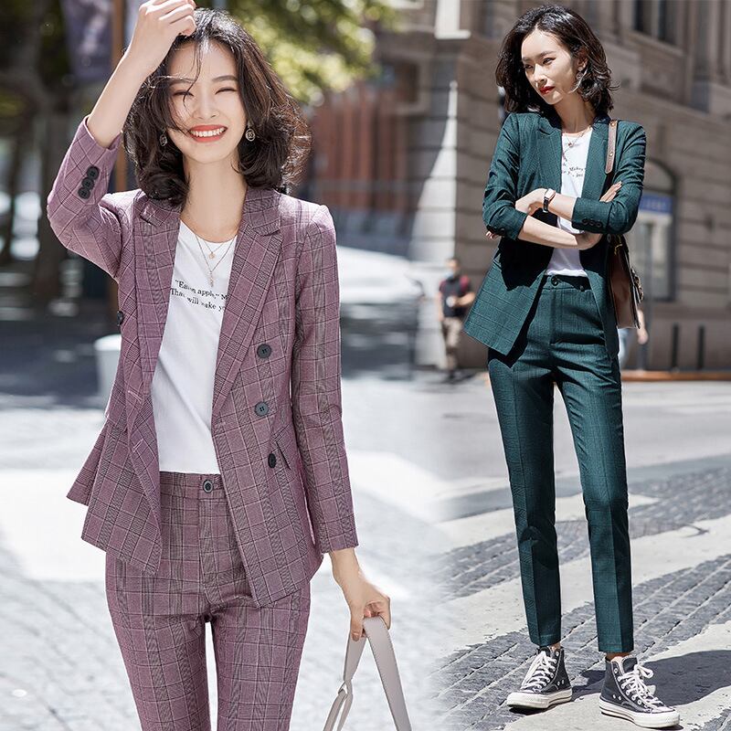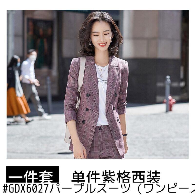 【新作】【送料無料】 パープルチェック柄長袖スーツジャケットとパンツツーピーススーツの女性2020秋と冬の新しいプロのカジュアルオーバーオール-アリババ ロング オータム 秋物 ウィンター 冬物 12b366037216964