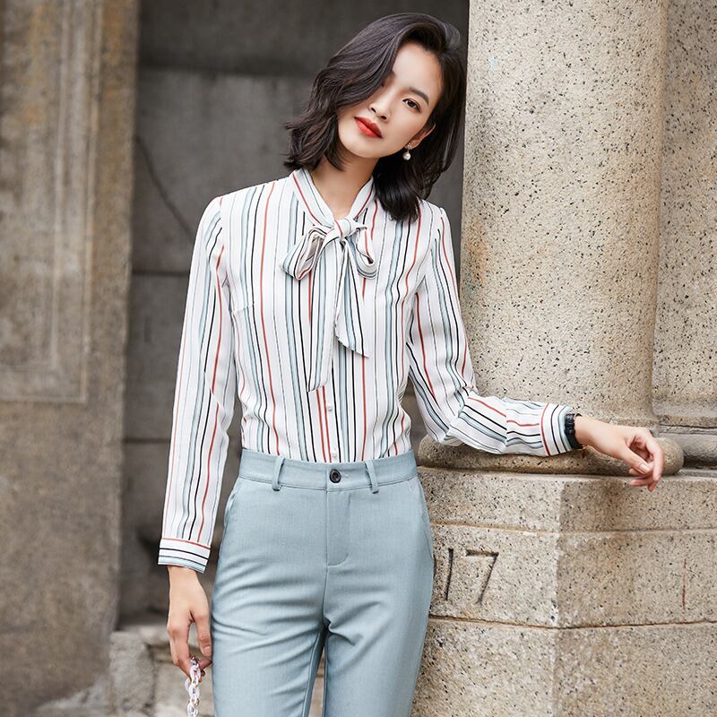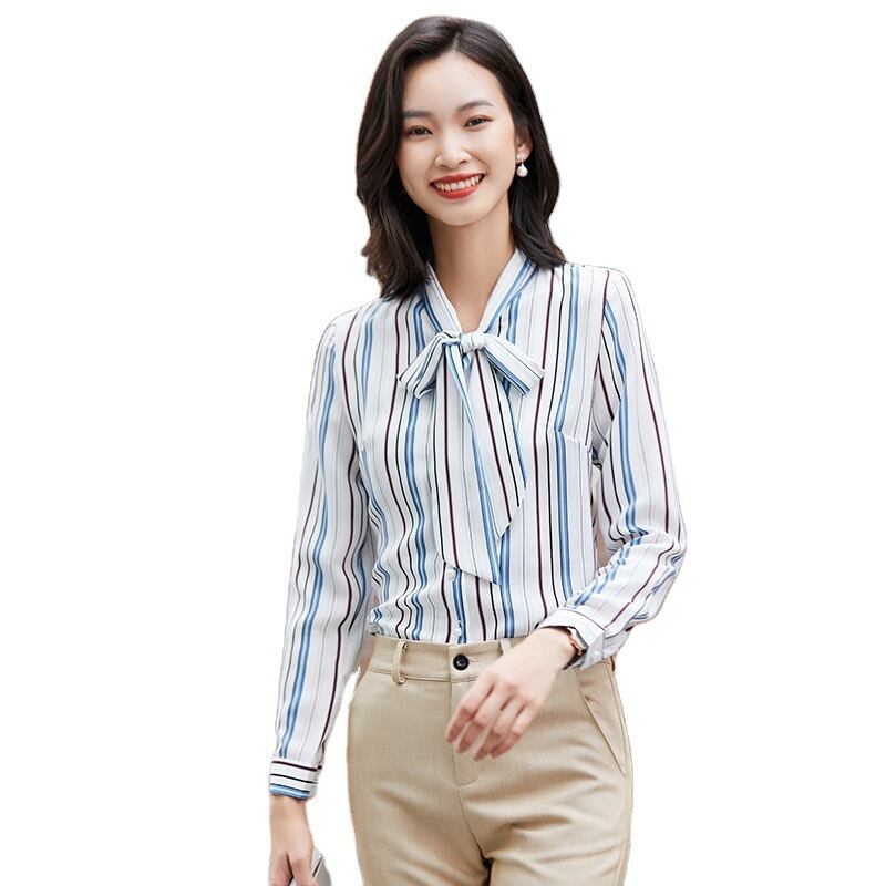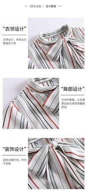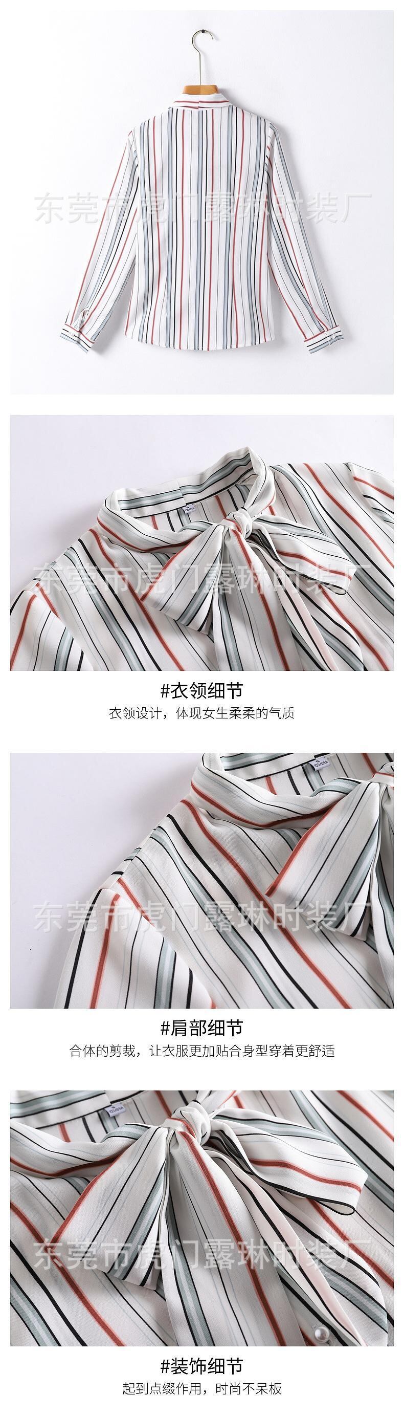 【新作】【送料無料】 レッドストライプ長袖スタンドカラーリボンシャツ2020秋新作レディースカジュアルスタイルスリムプロトップス-アリババ ロング オータム 秋物 12b310043415816