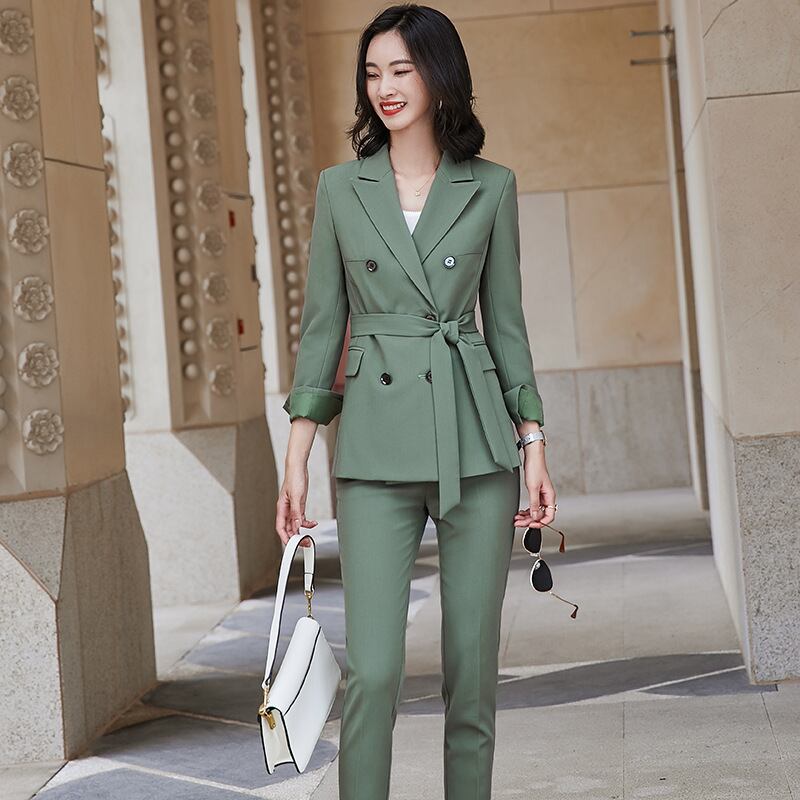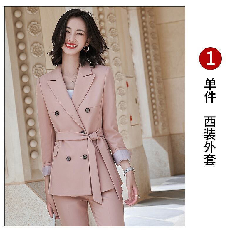 【新作】【送料無料】 ダブルブレストピンクのスーツパンツツーピーススーツ2020秋と冬の新しいハイウエストレースプロのスーツの女性-アリババ ハイウェスト オータム 秋物 ウィンター 冬物 12b312100724666