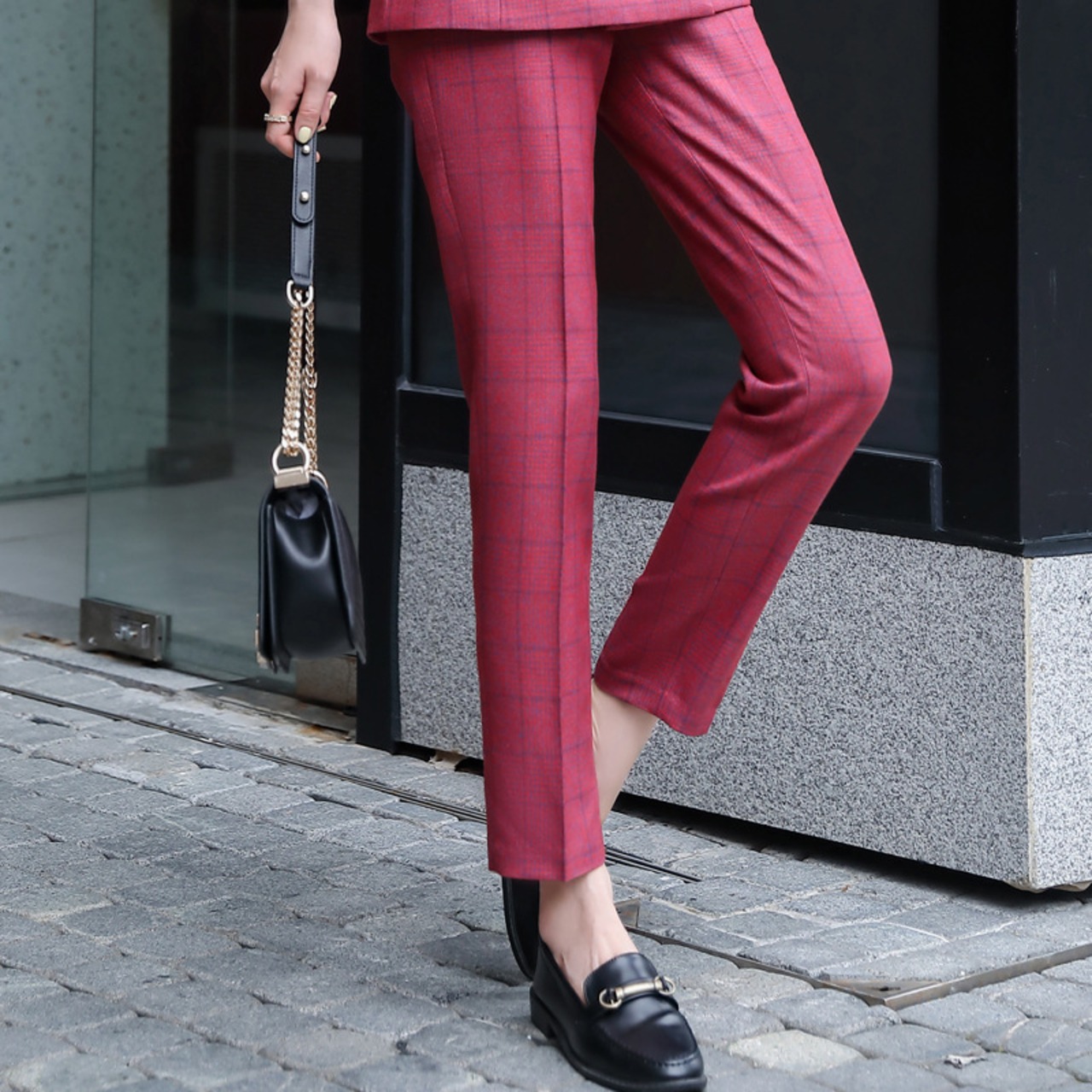 【新作】【送料無料】 チェック柄パープルスーツスカートレディース2020秋冬新プロスーツジャケット9点パンツツーピースセット-アリババ オータム 秋物 ウィンター 冬物 12b337966531904