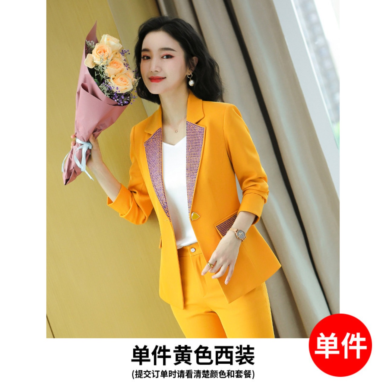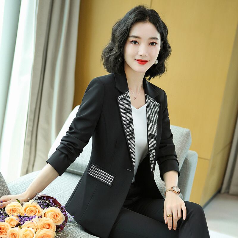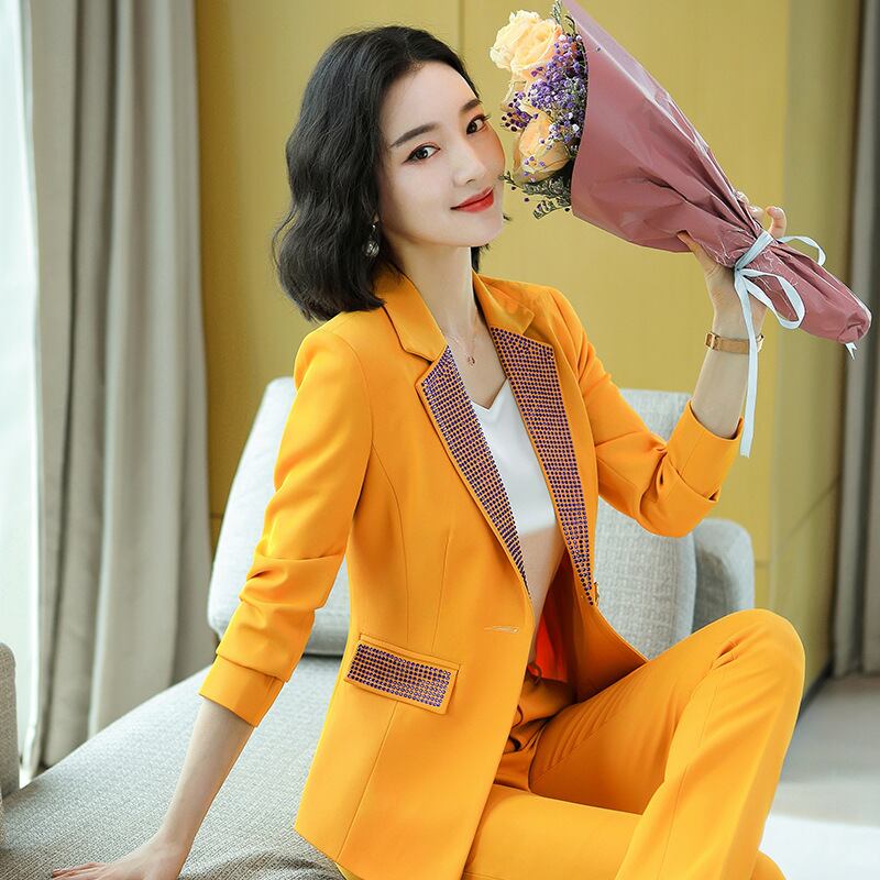 【新作】【送料無料】 重工業ビーズラペル長袖スーツパンツレディース2020秋冬新作スリムプロOL通勤ツーピースセット ロング オータム 秋物 ウィンター 冬物 12b361885369358