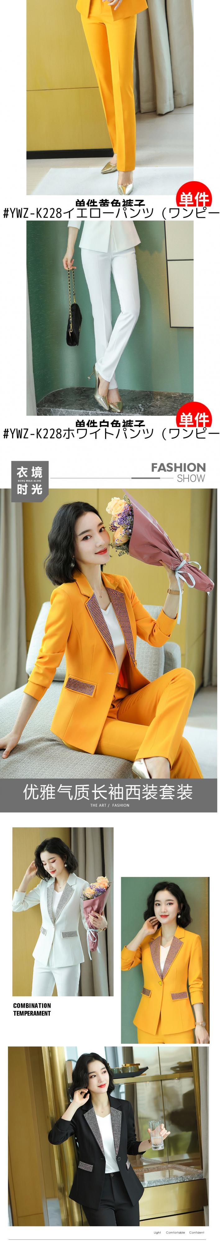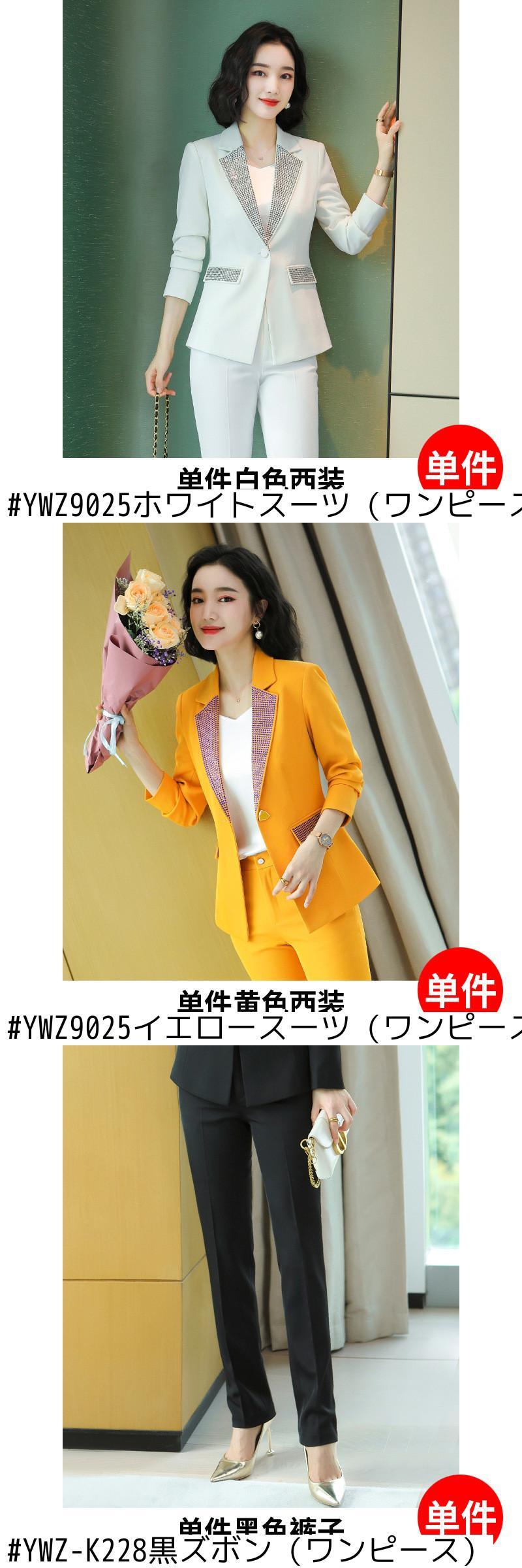 色:YWZ9025ブラックスーツ(ワンピース),YWZ9025ホワイトスーツ(ワンピース),YWZ9025イエロースーツ(ワンピース),YWZ-K228黒ズボン(ワンピース),YWZ-K228イエローパンツ(ワンピース),YWZ-K228ホワイトパンツ(ワンピース)