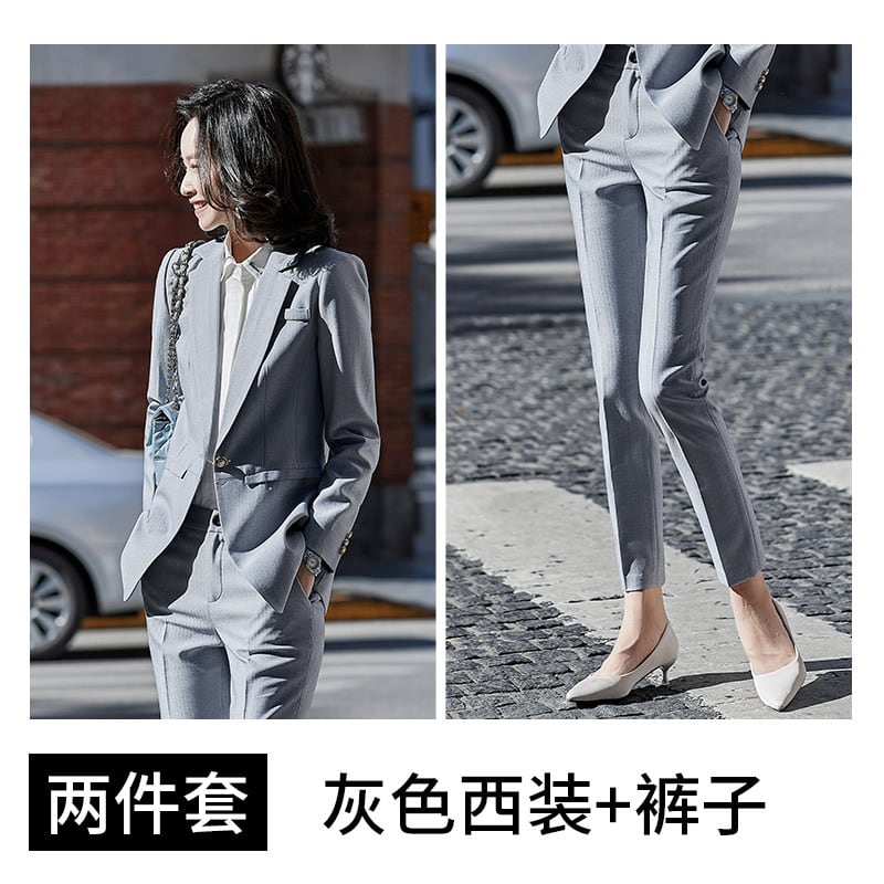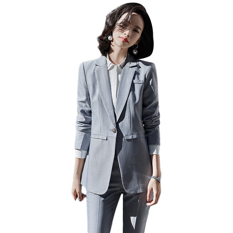 【新作】【送料無料】 グレーの長袖スーツジャケットナインポイントパンツツーピーススーツレディース2020秋冬新プロのマルワーク服-アリババ ロング オータム 秋物 ウィンター 冬物 12b398372319440