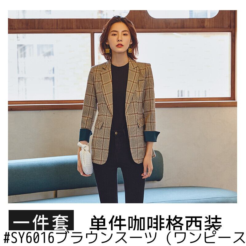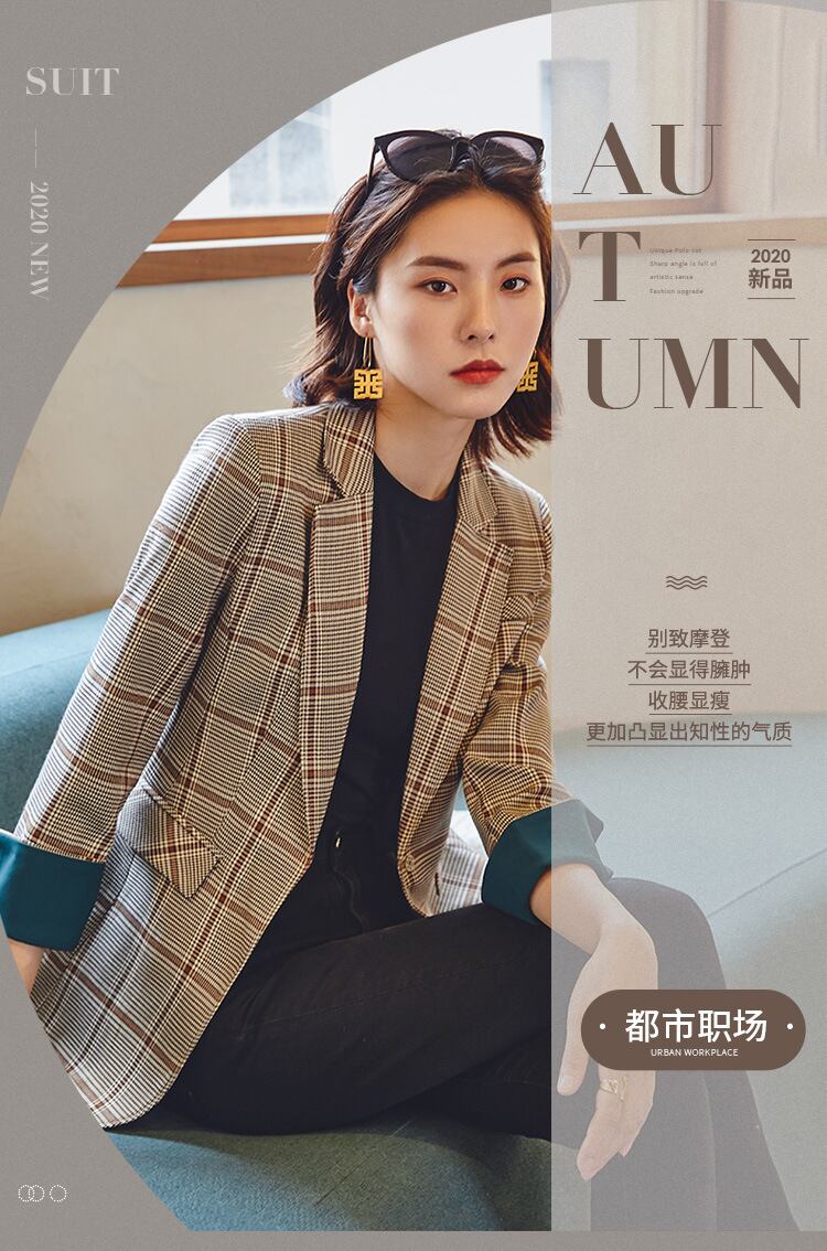 【新作】【送料無料】 2020年秋冬新コントラストカラーカフスミドル丈千鳥格子チェックスーツレディースプロカジュアルスモールスーツジャケット-アリババ オータム 秋物 ウィンター 冬物 12b38066859203