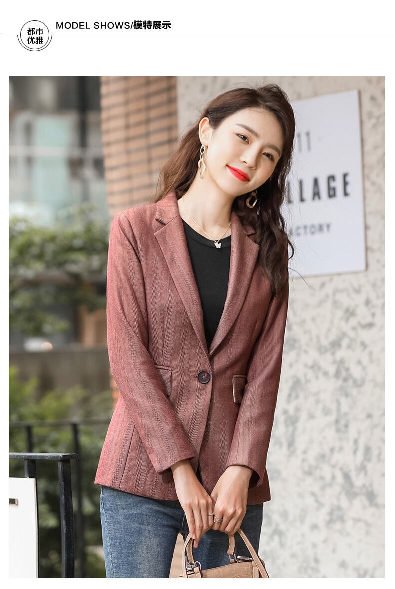 【新作】【送料無料】 ブリティッシュスタイル対応のスモールスーツジャケット2020秋冬新作レディース長袖ストライプワンボタンスリムスーツ-アリババ ロング オータム 秋物 ウィンター 冬物 12b342197156373