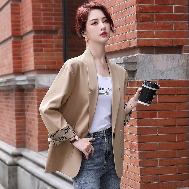 【新作】【送料無料】 袖口がプリントされたアプリコット長袖スーツ2020年秋冬新作女性用ビッグポケットウエスタンスタイルプロ通勤用スモールスーツ-アリババ ロング オータム 秋物 ウィンター 冬物 12b375396467469