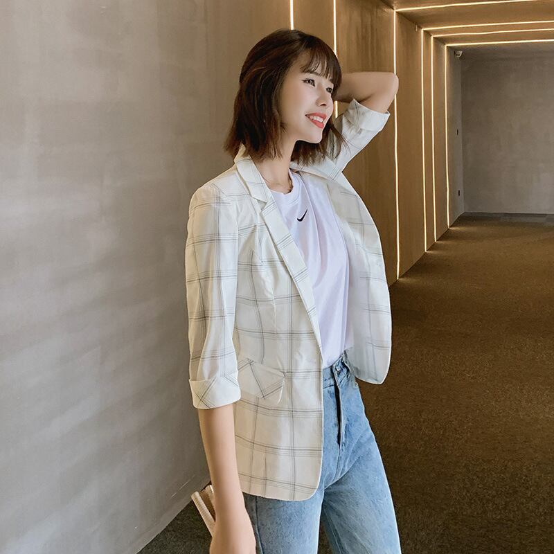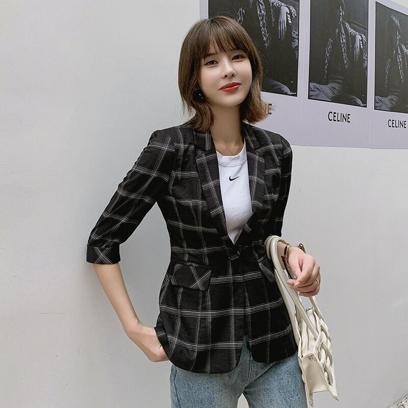 【新作】【送料無料】 黄色の格子縞の小さなスーツジャケット2020秋と冬の新しい女性のプロのese薄い半袖の小さな香りのスタイルのスーツ-アリババ オータム 秋物 ウィンター 冬物 12b353192967343