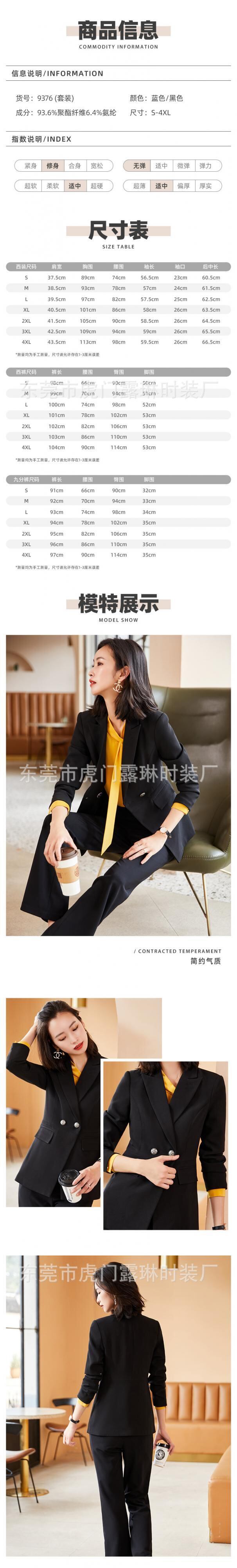色:QYC9376ブルースーツ(ワンピース),QYC9376ブラックスーツ(ワンピース),QYC9376黒のスーツ+ズボンのツーピーススーツ,QYC9376ブルースーツ+ズボンツーピーススーツ