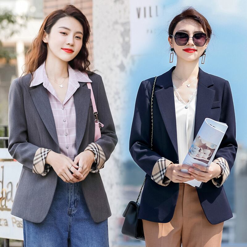 【新作】【送料無料】 対照的なカラーカフデザインセンススーツ2020秋と冬の新しい女性のワンボタンスリムスリミングプロブレザー-アリババ オータム 秋物 ウィンター 冬物 12b356651812216