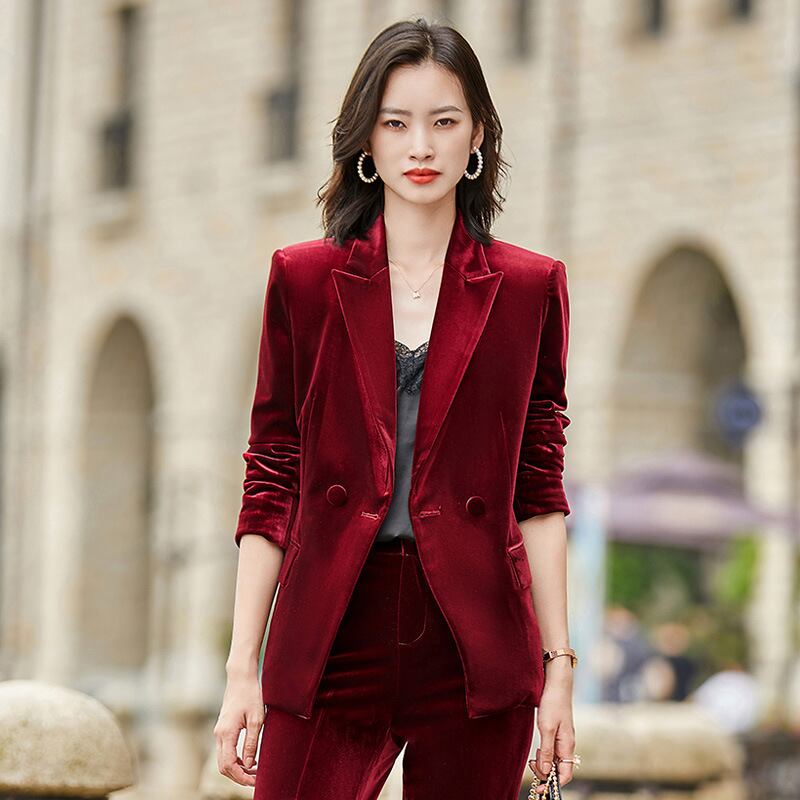 【新作】【送料無料】 2020年秋冬新作レッドゴールドベルベットカジュアルスーツパンツ気質スーツジャケットロングパンツツーピーススーツ-アリババ オータム 秋物 ウィンター 冬物 12b324937261247