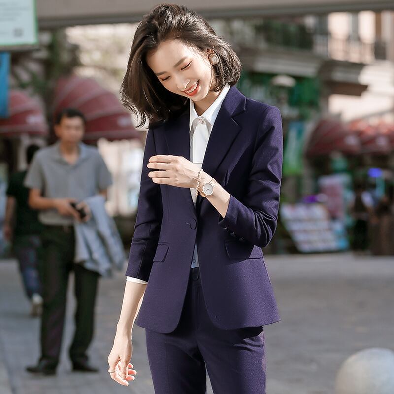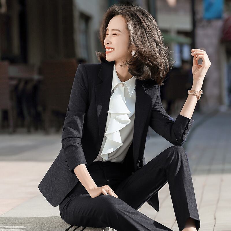 【新作】【送料無料】 黒人大学生インタビュー作業服マルウェア2020秋冬新通勤プロスーツパンツツーピーススーツ女性-アリババ ブラック オータム 秋物 ウィンター 冬物 12b338901881804