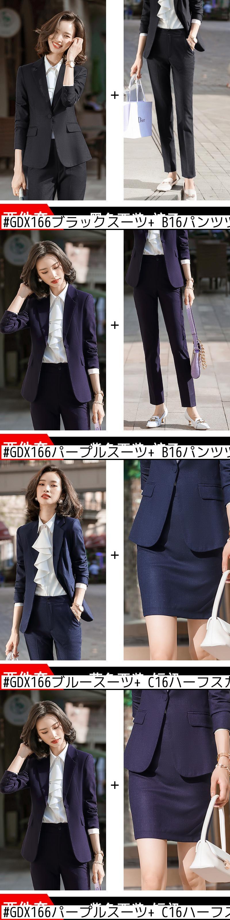 色:GDX166ブラックスーツ(ワンピース),GDX166ブルースーツ(ワンピース),GDX166パープルスーツ(ワンピース),GDX166ブルースーツ+B16パンツツーピーススーツ,GDX166ブラックスーツ+B16パンツツーピーススーツ,GDX166パープルスーツ+B16パンツツーピーススーツ,GDX166ブルースーツ+C16ハーフスカートツーピーススーツ,GDX166パープルスーツ+C16ハーフスカートツーピーススーツ,GDX166ブラックスーツ+C16ハーフスカートツーピーススーツ,GDX2036ホワイトシャツ(ワンピース),GDX2036グリーンシャツ(ワンピース)