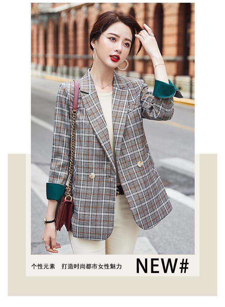 【新作】【送料無料】 対照的な色の袖口ミドル丈スーツ2020秋と冬の新しい女性のプロの通勤ネット赤い格子縞の小さなスーツジャケット-アリババ レッド オータム 秋物 ウィンター 冬物 12b366336937169