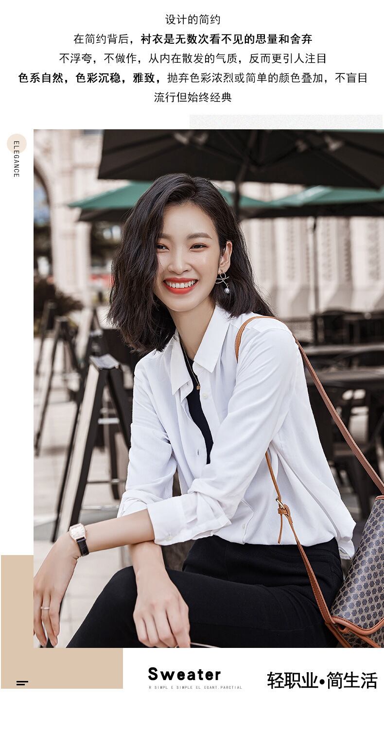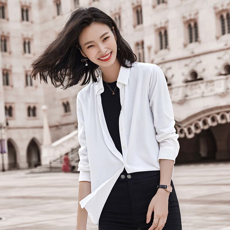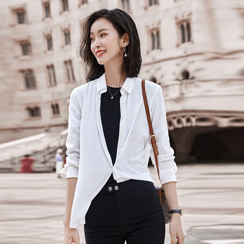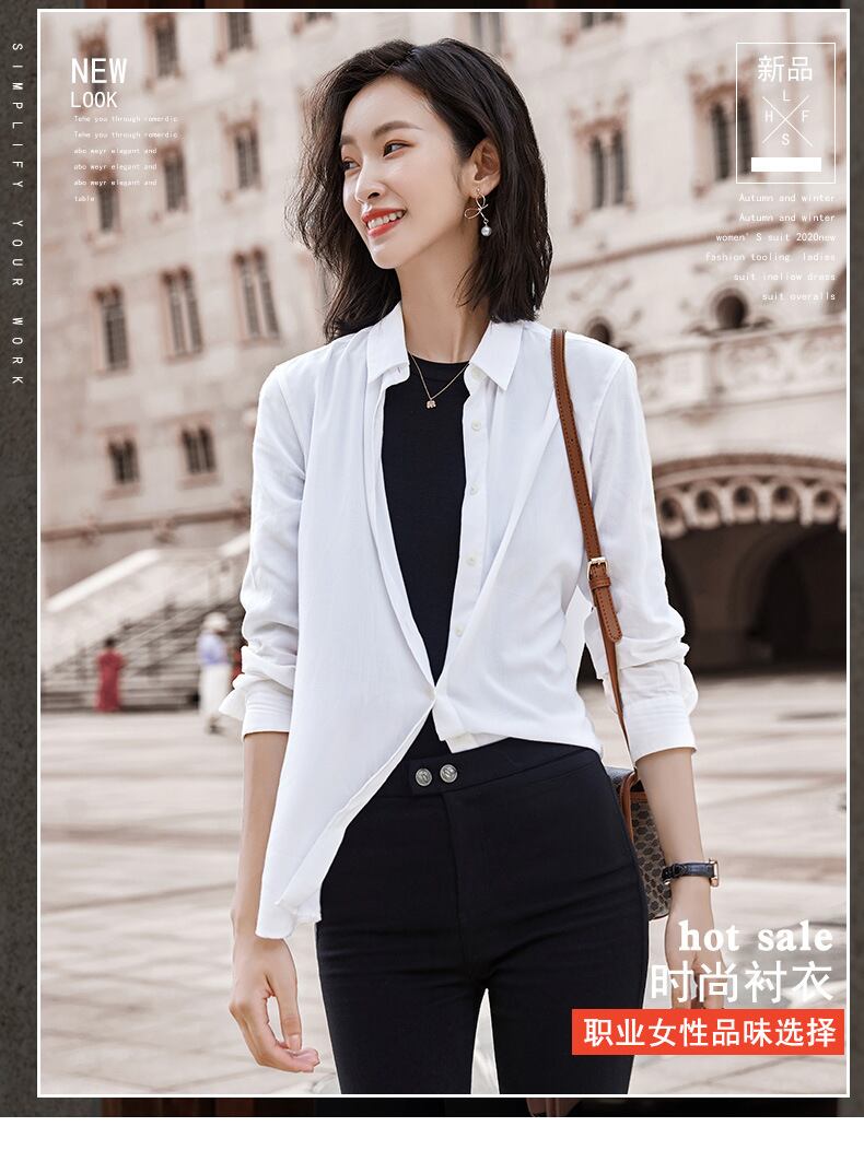 【新作】【送料無料】 ホワイトカジュアル長袖シャツ2020秋の新しい女性のウエスタンスタイルは、ネットレッドのシンプルなコミュータートップの薄いバージョンです-アリババ ロング オータム 秋物 12b366840266048
