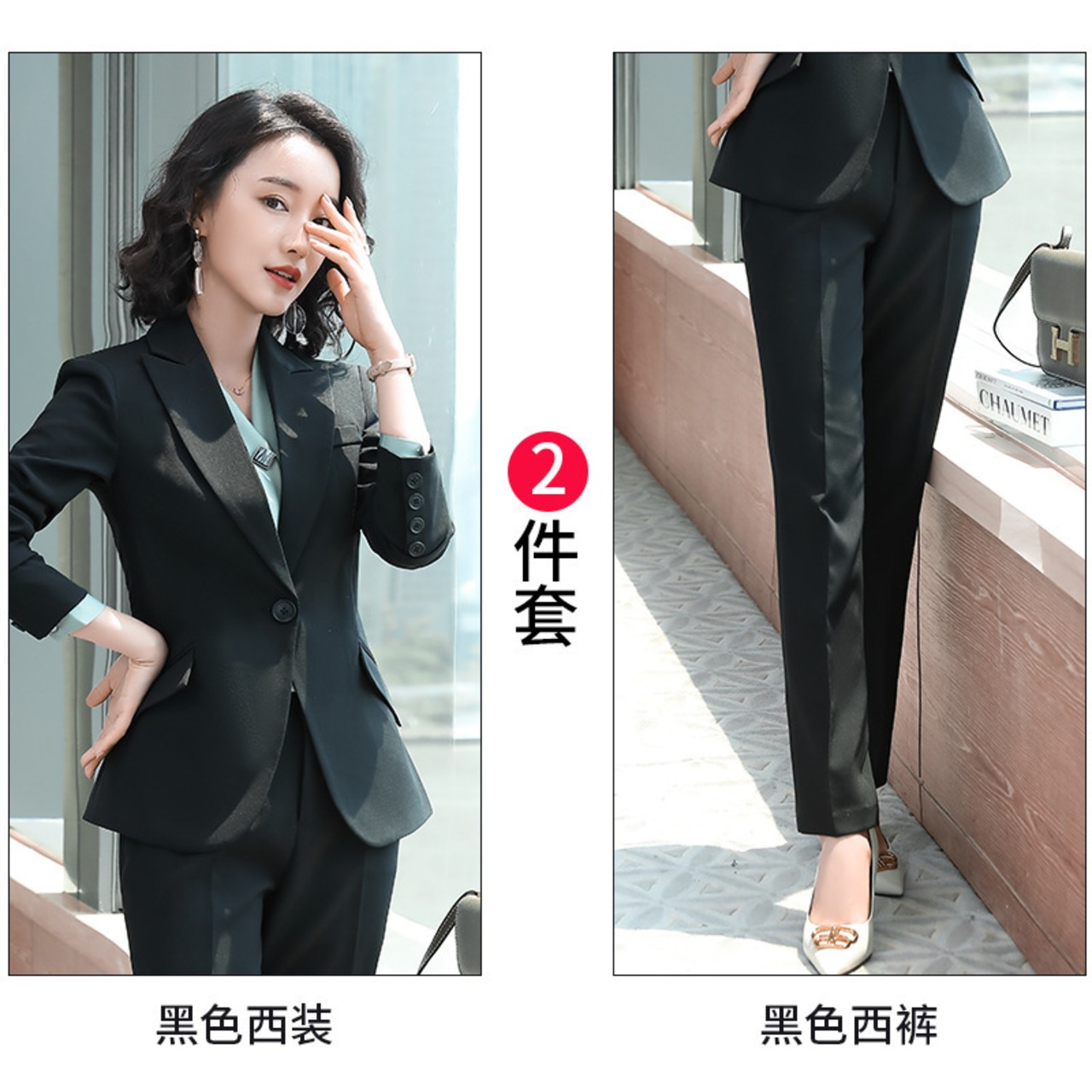 【新作】【送料無料】 黒のプロのスーツパンツ女性2020秋と冬の新しい長袖スリムマルスーツ作業服ツーピース-アリババ ロング ブラック オータム 秋物 ウィンター 冬物 12b365124326617
