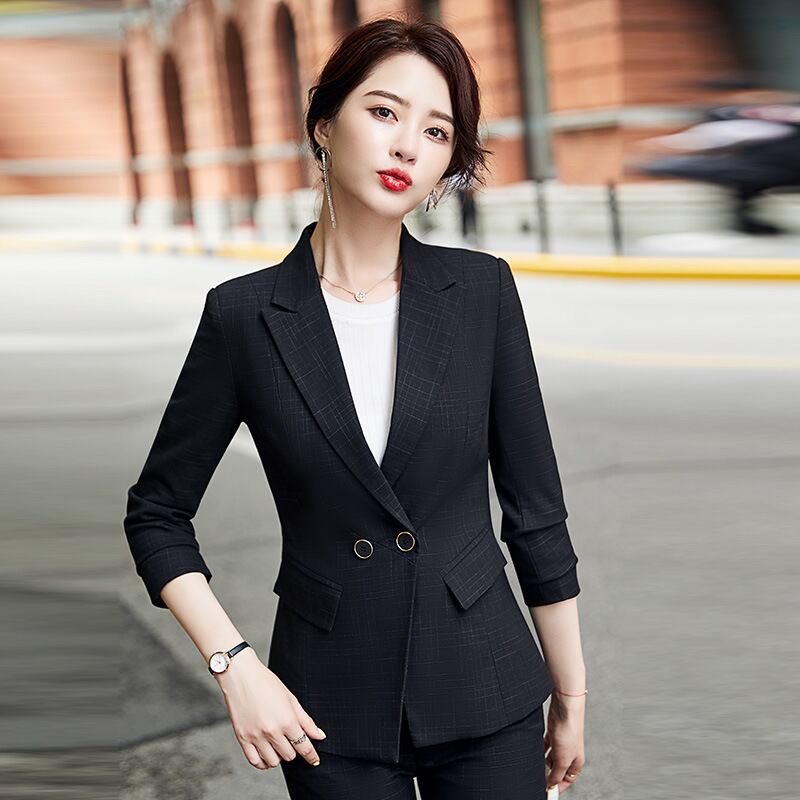 【新作】【送料無料】 黒のチェック柄スリムプロスーツジャケットパンツツーピーススーツレディース2020秋冬新作オーバーオール ブラック オータム 秋物 ウィンター 冬物 12b394305894604