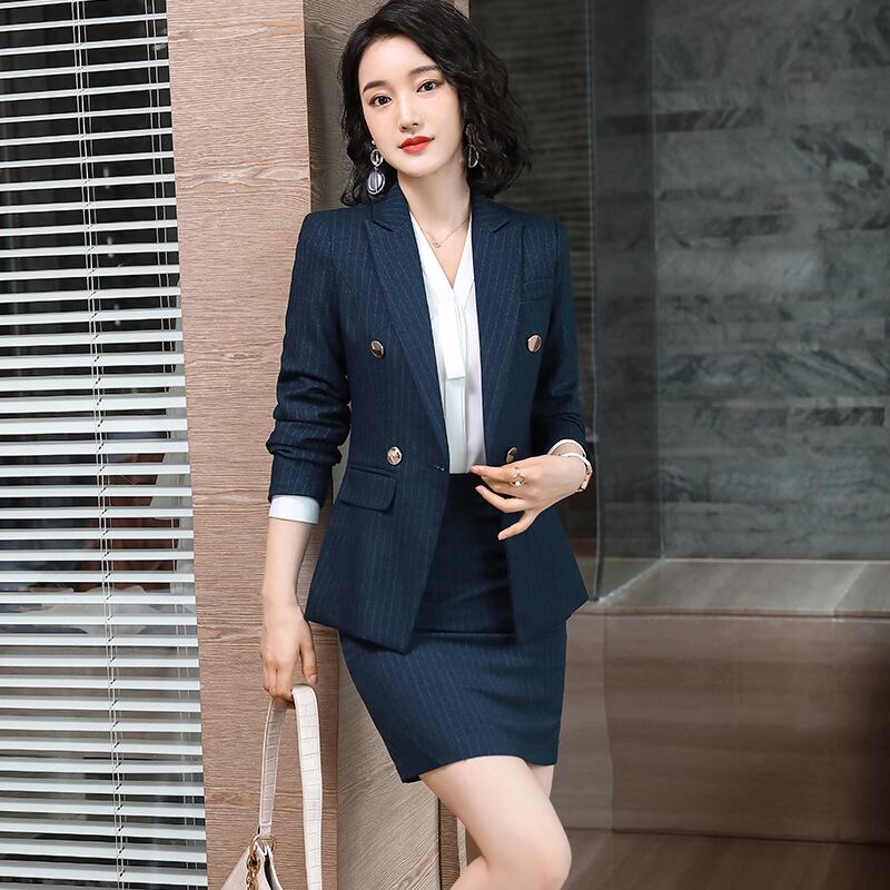 【新作】【送料無料】 ストライプ長袖プロスーツパンツ女性2020年秋冬新作ホワイトカラーインタビュー社長セールススーツツーピーススーツ-アリババ ロング オータム 秋物 ウィンター 冬物 12b333653004241