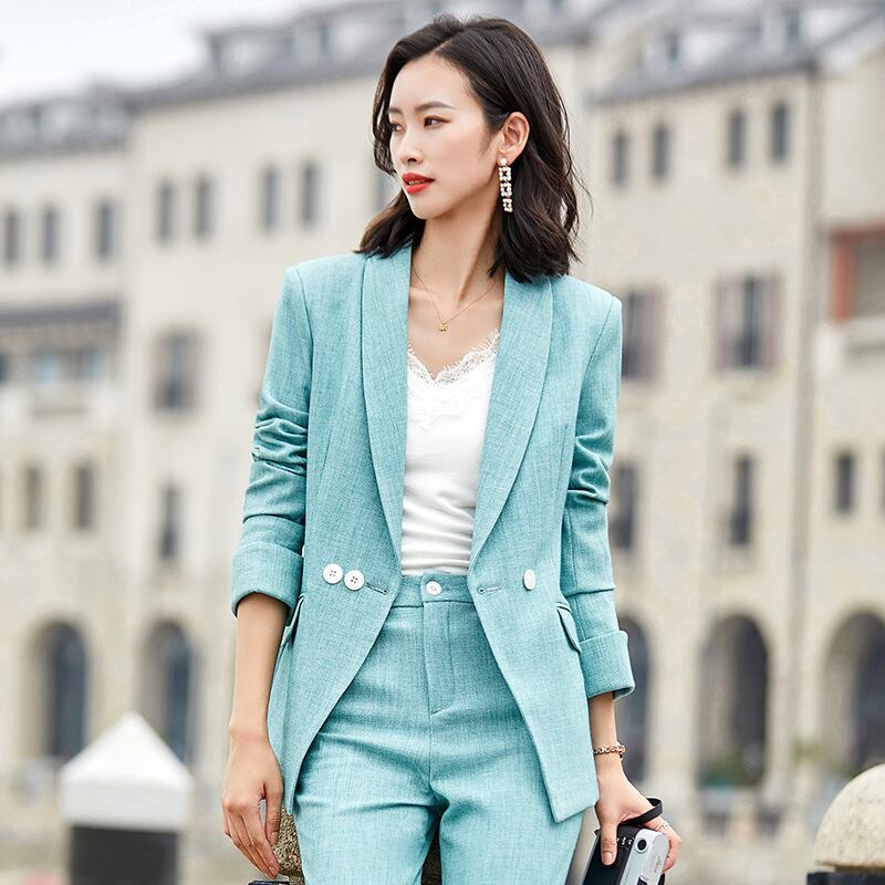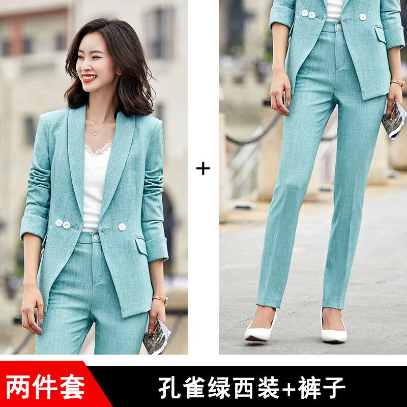 【新作】【送料無料】 フレッシュでハンサムなグリーンのスーツパンツツーピースの女性の2020年秋冬の新しいプロのビジネス作業服 オータム 秋物 ウィンター 冬物 12b33795762092