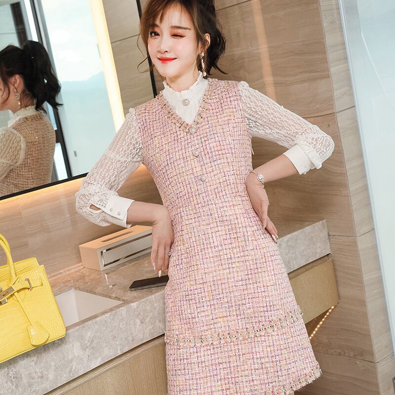 【新作】【送料無料】 XiaoxiangfengHepburnレディースツイードデザインセンスジャケットとドレスツーピーススーツレディース2020秋と冬の新しい-アリババ オータム 秋物 ウィンター 冬物 12b369161705785