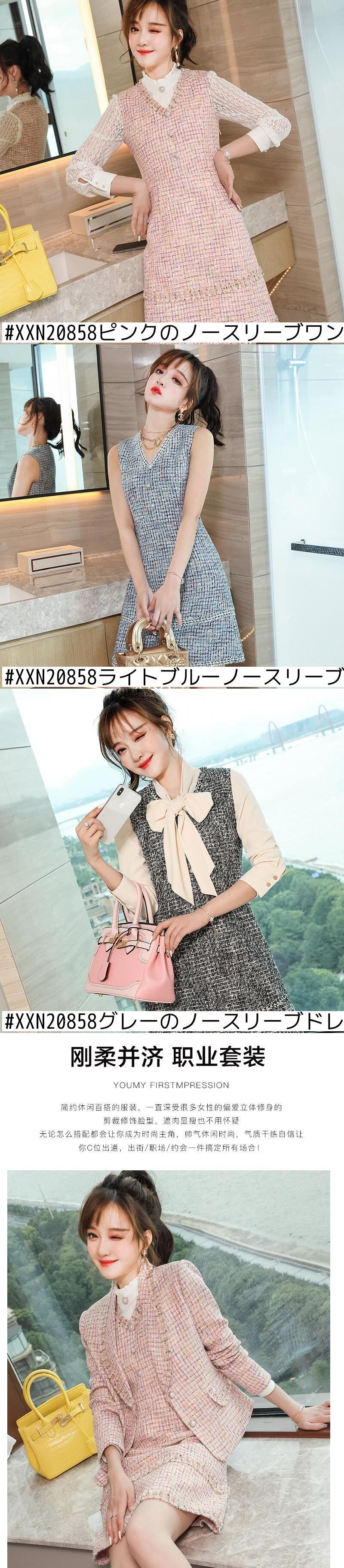 色:XXN20966グレージャケット(ワンピース),XXN20966ピンクジャケット(ワンピース),XXN20966ライトブルージャケット(ワンピース),XXN20858ピンクのノースリーブワンピース(ワンピース),XXN20858ライトブルーノースリーブワンピース(ワンピース),XXN20858グレーのノースリーブドレス(ワンピース)