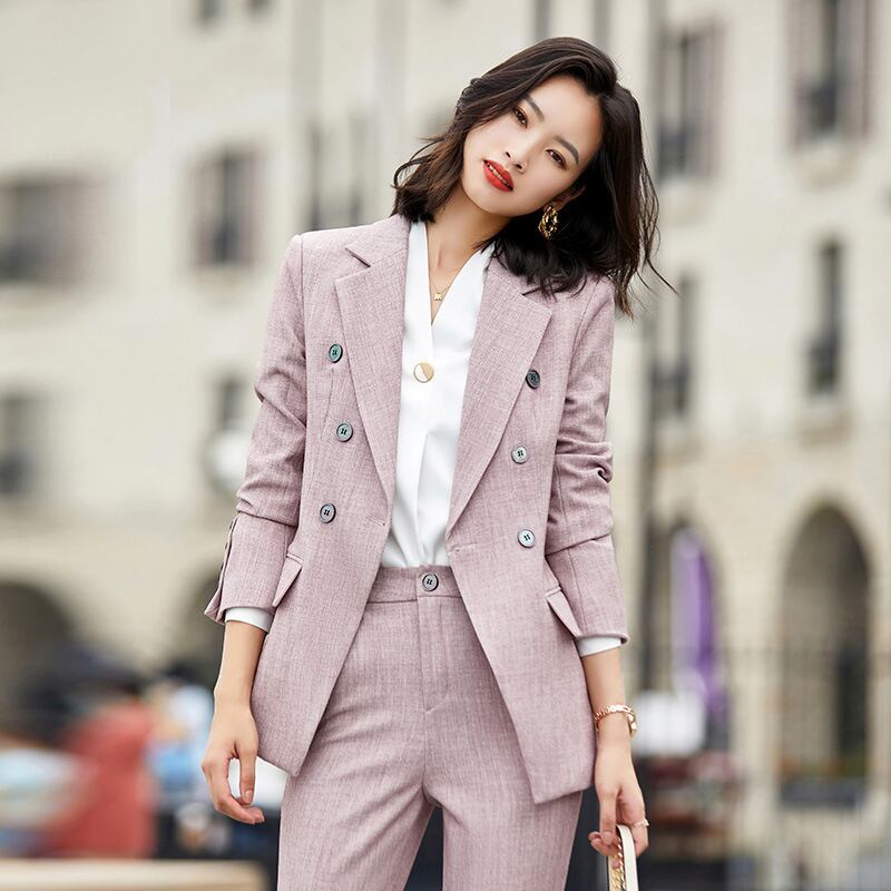 【新作】【送料無料】 ダブルブレストデザインセンススーツパンツウィメンズ2020秋冬新プロコミュータースタイルビジネス対応ツーピーススーツ-アリババ オータム 秋物 ウィンター 冬物 12b398995256771