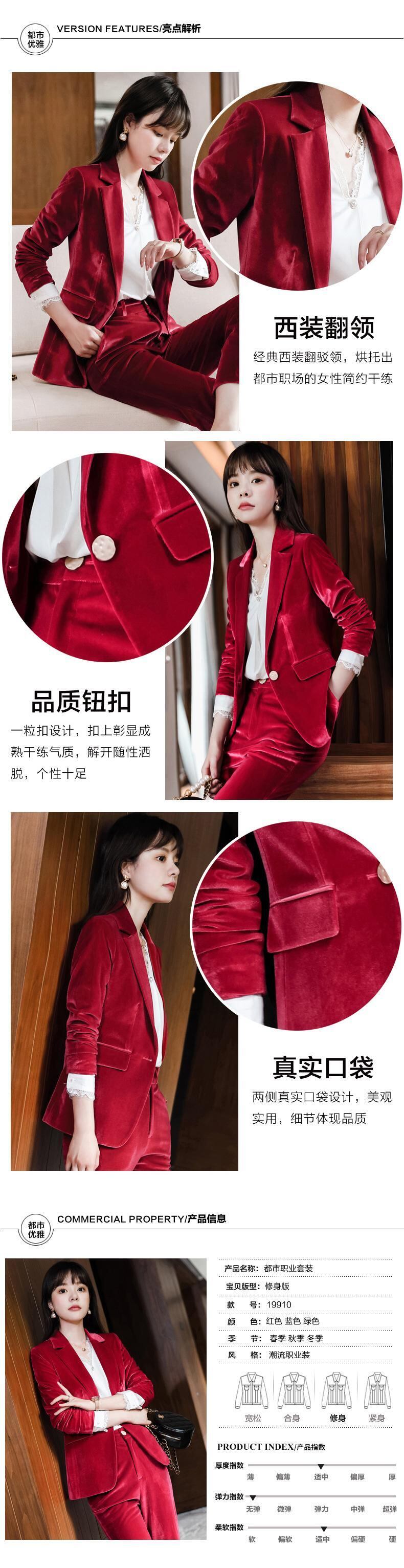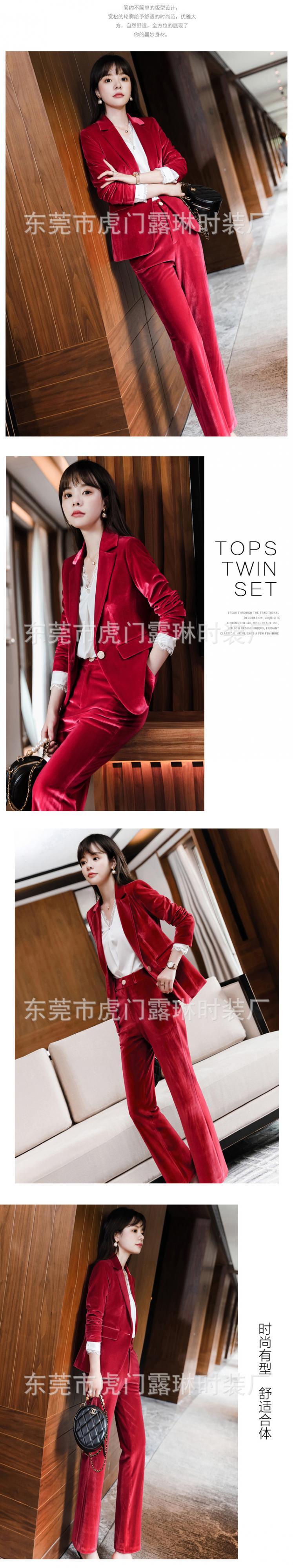 【新作】【送料無料】 冬の新しいゴールドベルベット長袖ワンボタンスーツ女性20ファッションカジュアルパンツツーピーススーツ-アリババ ロング ウィンター 冬物 12b333582154792