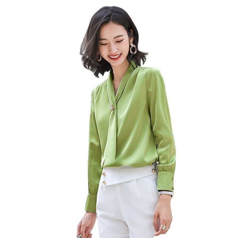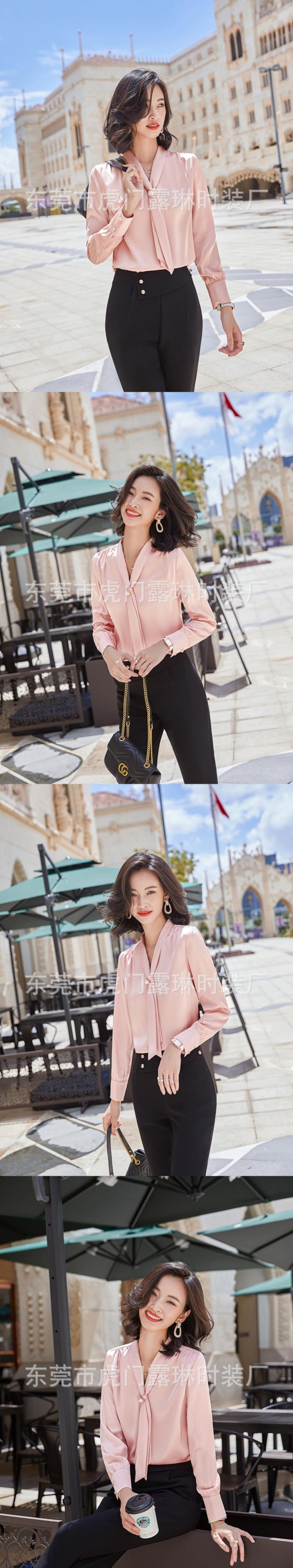 【新作】【送料無料】 2020年秋冬の新しいアプリコット長袖シャツ女性用プロコミューターバージョンの薄いスタンドアップカラーリボン気質トップ-アリババ ロング オータム 秋物 ウィンター 冬物 12b315826421524