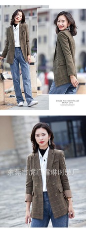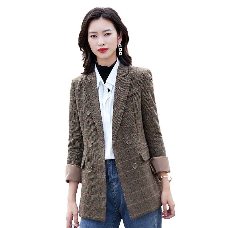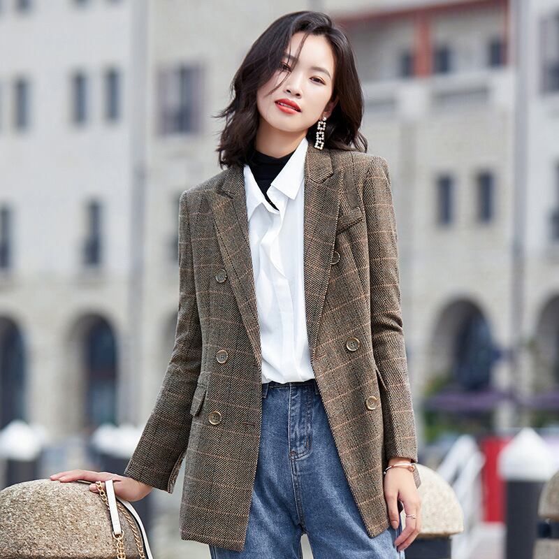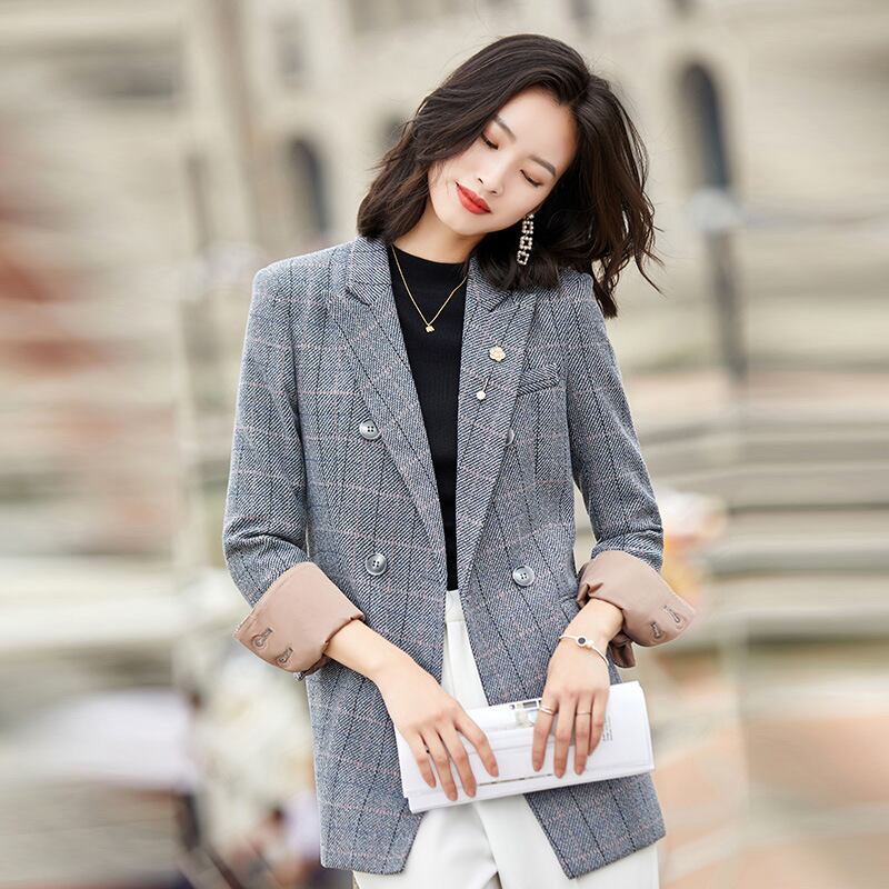 【新作】【送料無料】 千鳥格子チェックカジュアルレトロスタイルネットレッドジャケットスーツ2020秋と冬の新しい女性のプロの女神小さなスーツ-アリババ オータム 秋物 ウィンター 冬物 12b310327239838