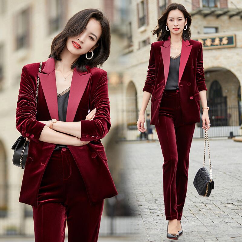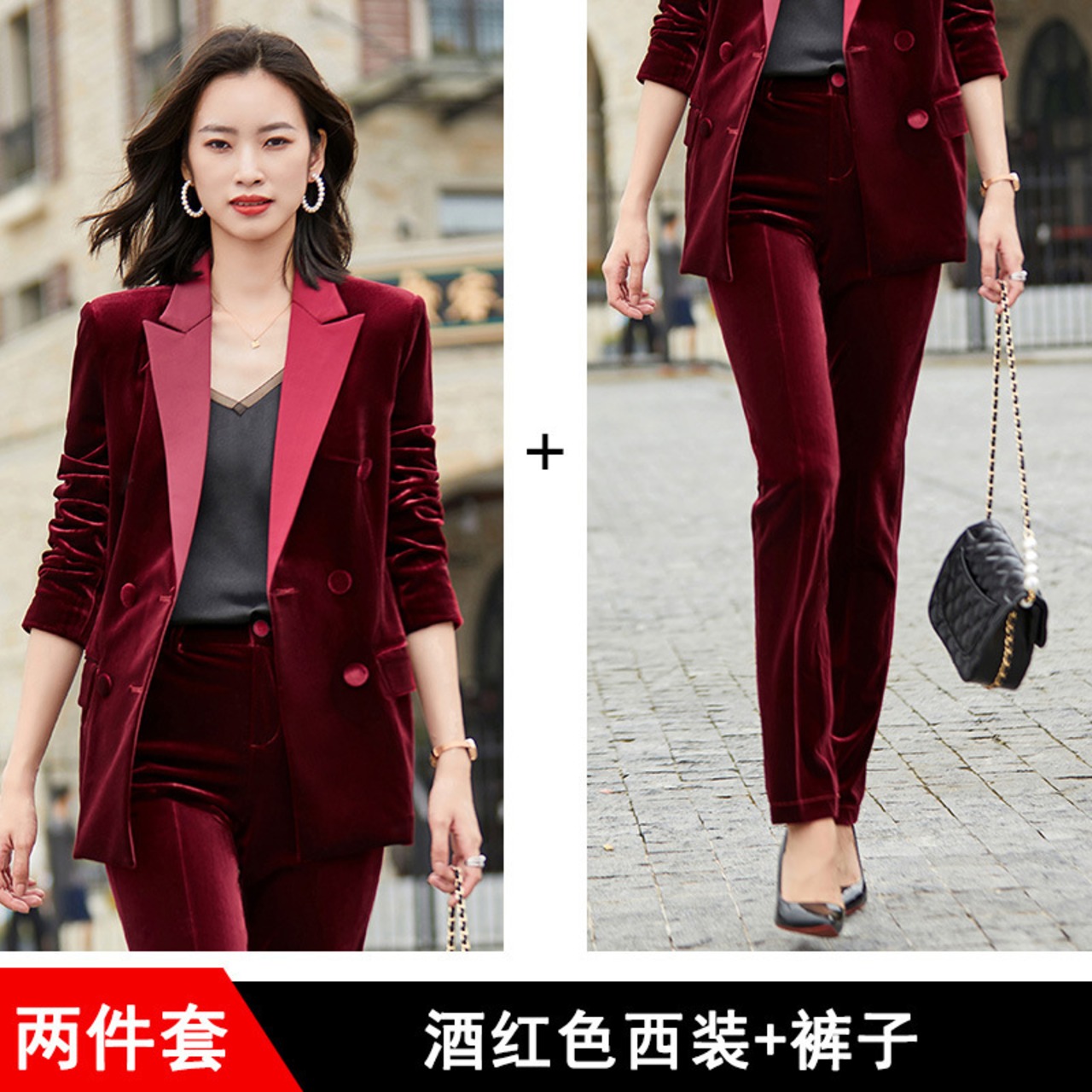 【新作】【送料無料】 スタイルデザインセンスレッドゴールドベルベットスーツパンツツーピース女性2020秋冬新スタイル-アリババ オータム 秋物 ウィンター 冬物 12b344053399396