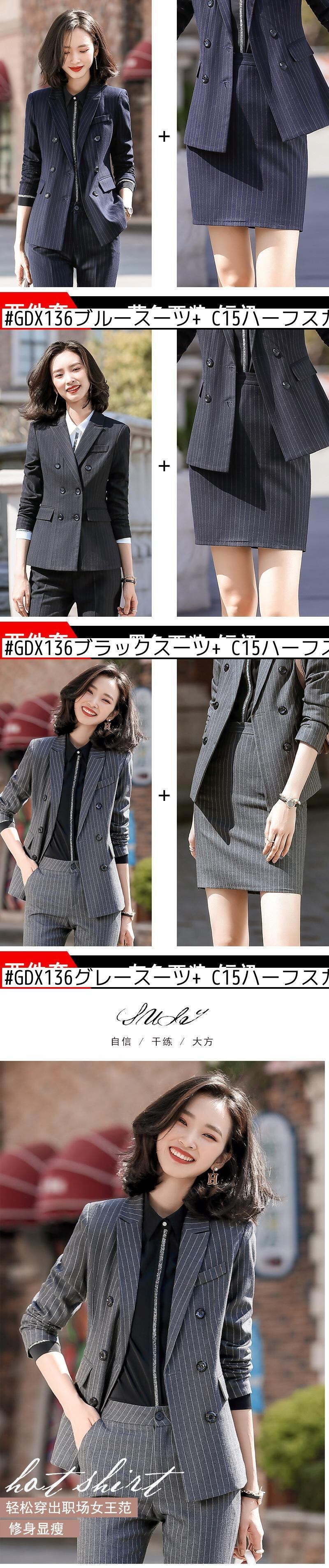 【新作】【送料無料】 2020年秋冬の新しいマルウェアグループウェアツーピースコミューターレディースストライプダブルブレストプロスカートスーツ-アリババ オータム 秋物 ウィンター 冬物 12b320512329685