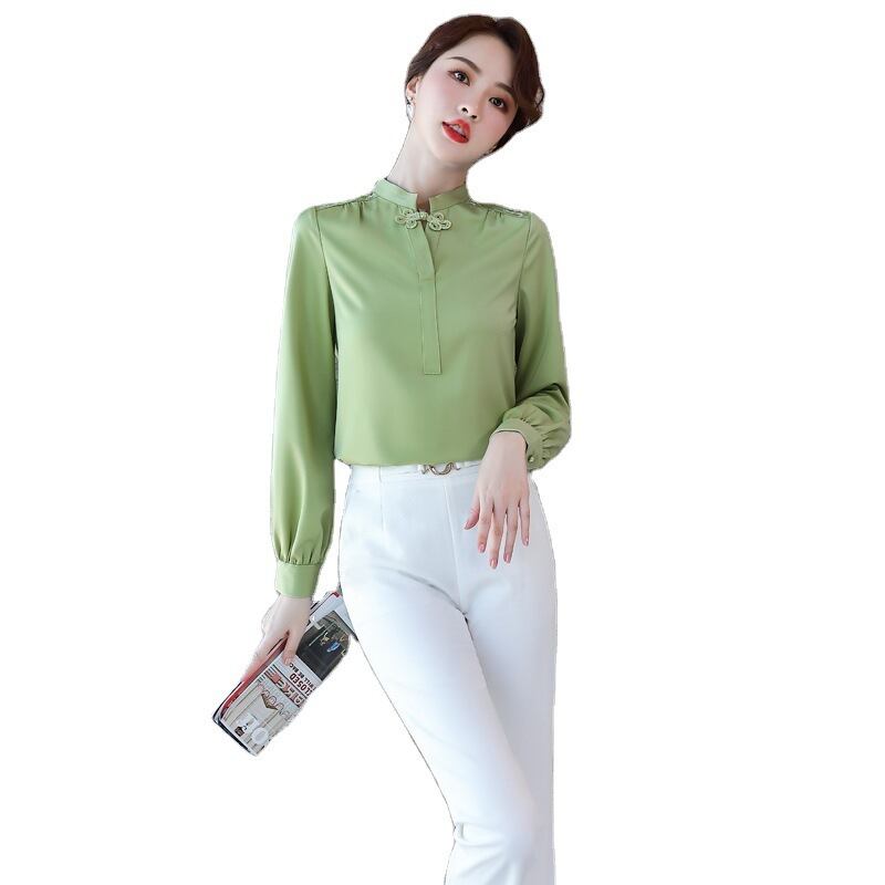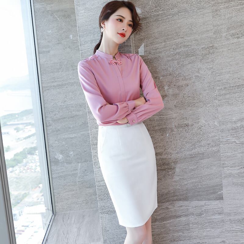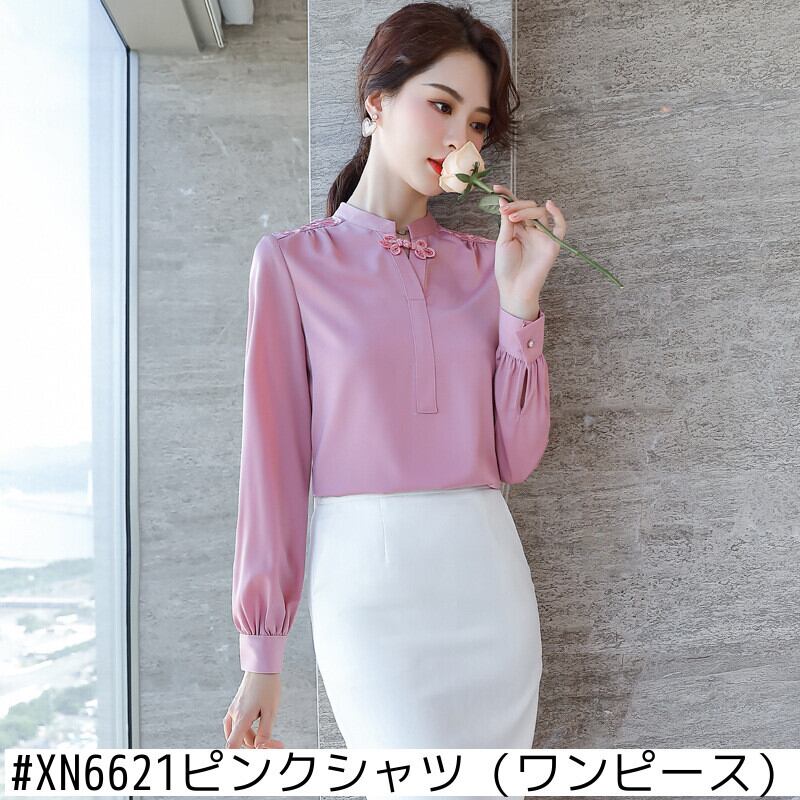 【新作】【送料無料】 ピンクの年齢を減らす中国のボタン長袖シャツ2020秋と冬の新しい女性のプロのウェアデザインのニッチトップス-アリババ ロング オータム 秋物 ウィンター 冬物 12b379066117616