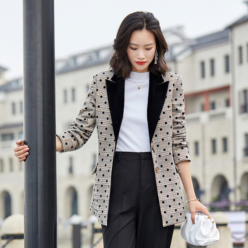 【新作】【送料無料】 2020年秋冬新作ロング水玉リップルコントラストスモールスーツジャケットレディースプロウェアカジュアルスーツ-アリババ オータム 秋物 ウィンター 冬物 12b364725952831