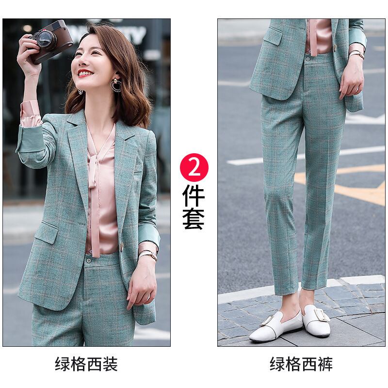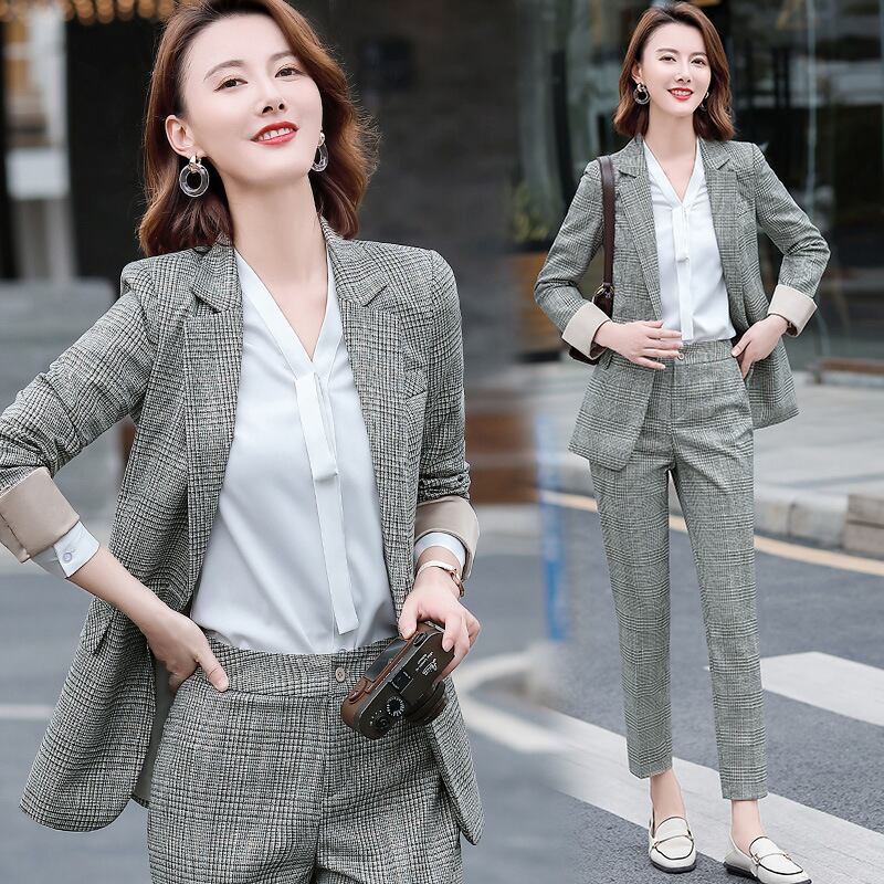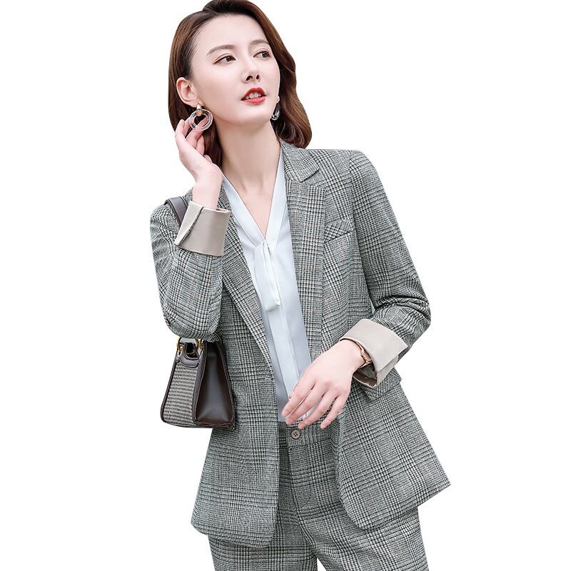 【新作】【送料無料】 グレーのチェック柄長袖スーツパンツレディース2020秋冬新作ホワイトカラーインタビュー大学生スーツツーピーススーツ-アリババ ロング オータム 秋物 ウィンター 冬物 12b335772674803