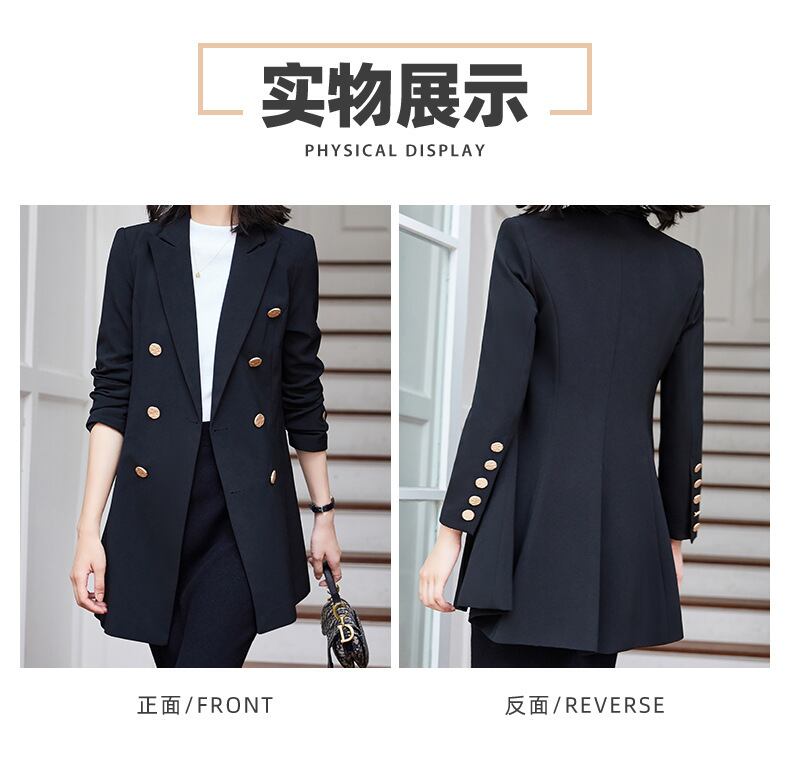 【新作】【送料無料】 ブラックダブルブレストデザインスーツ2020秋冬レディースヘップバーンスタイルネットレッドミドル丈スリムブレザー-アリババ オータム 秋物 ウィンター 冬物 12b363902039778