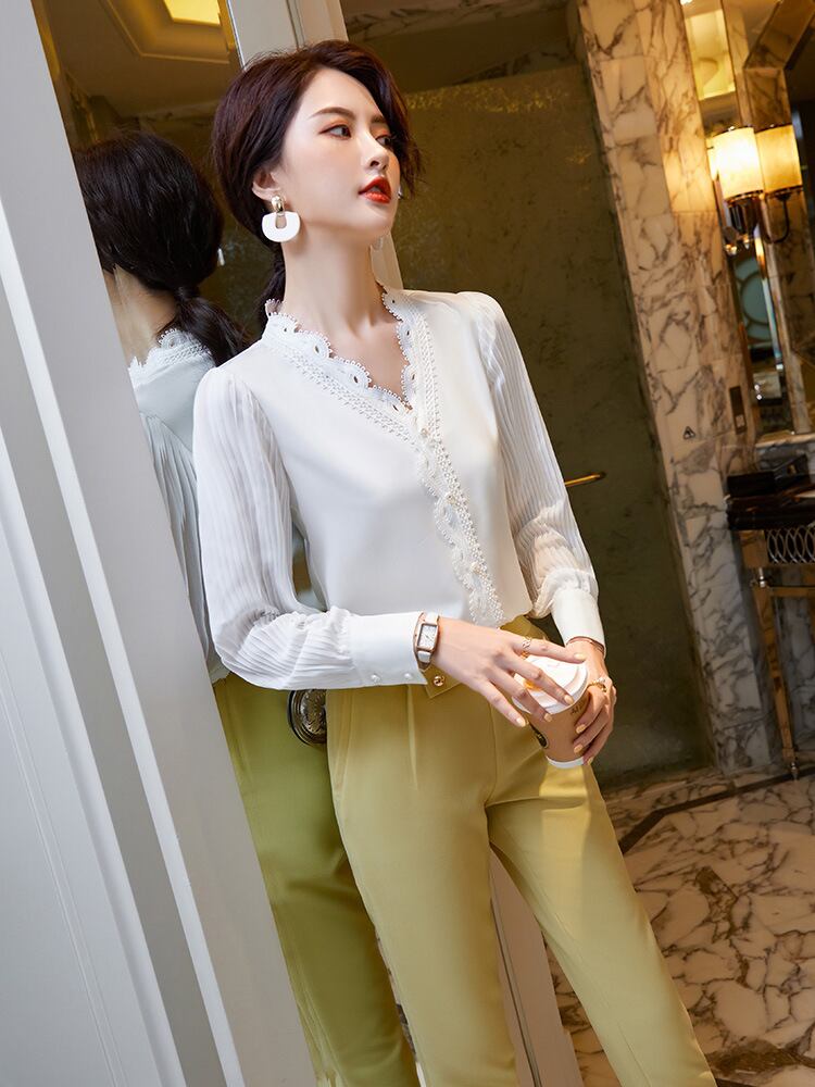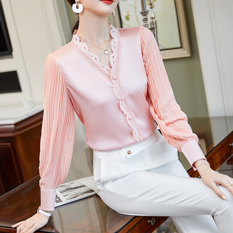 【新作】【送料無料】 プリーツ長袖シャツ2020秋冬新作レディースピンクエイジリダクションウエスタンスタイルルーズレディーススタイルシャツ-アリババ ロング オータム 秋物 ウィンター 冬物 12b322448805333