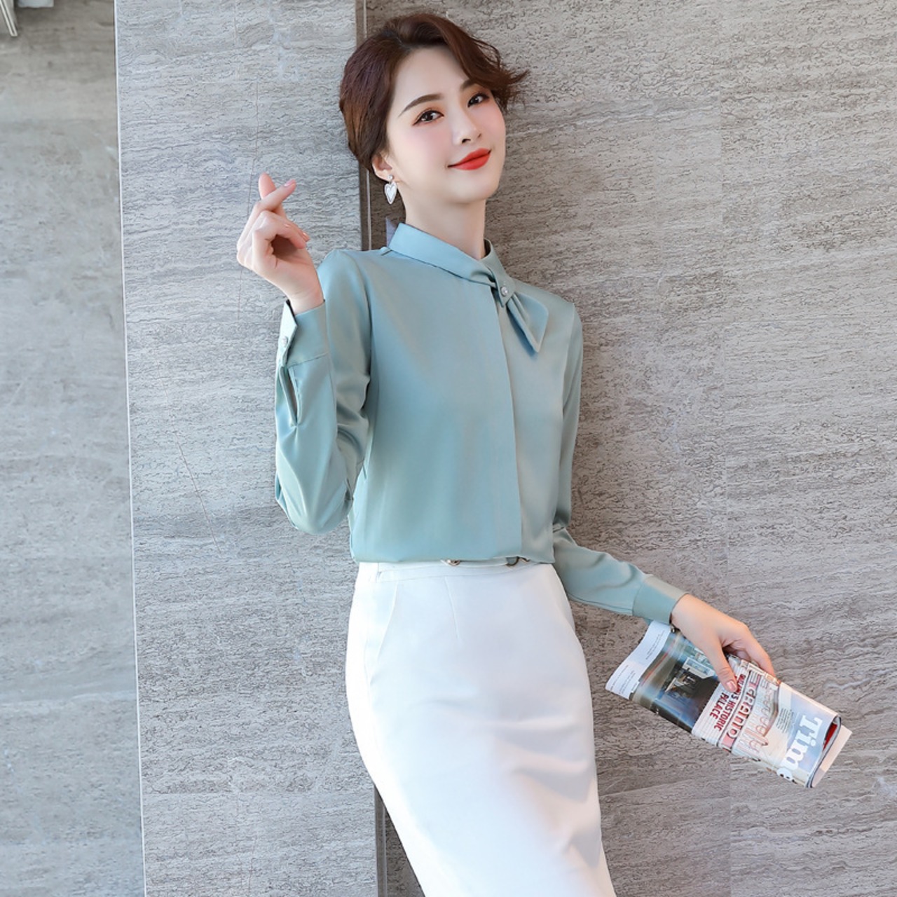 【新作】【送料無料】 ブルーのシングルブレストサテンシャツ2020秋冬の新しい女性のプロのルーズで薄いデザインの気質トップ-アリババ オータム 秋物 ウィンター 冬物 12b36333841393