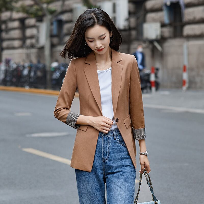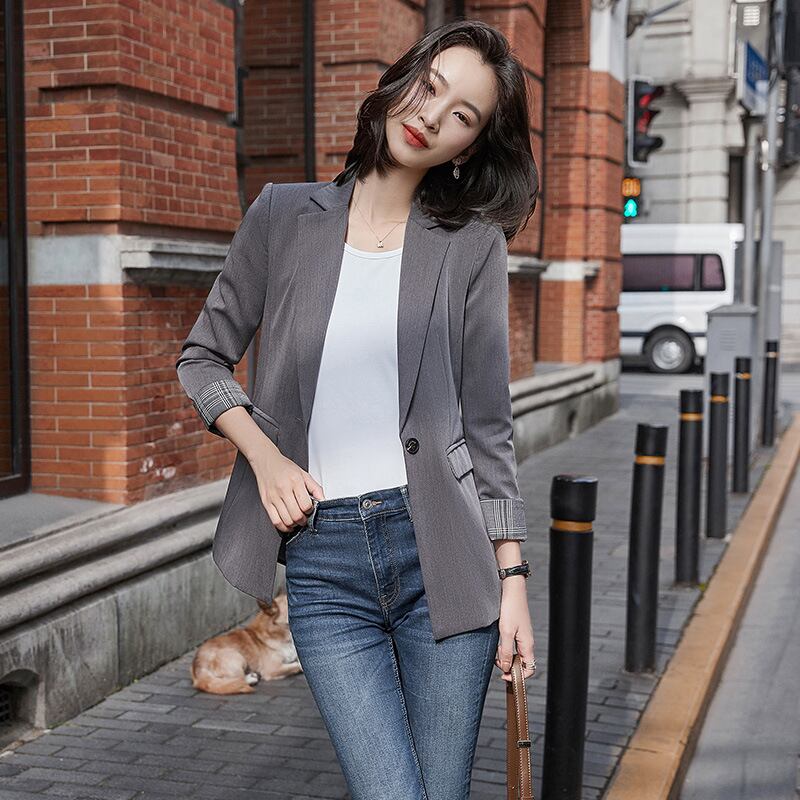【新作】【送料無料】 2020年秋冬新作グレー長袖スーツジャケットレディースカジュアルシンプル香港テイスト対応ロングスーツジャケット-アリババ オータム 秋物 ウィンター 冬物 12b329848936433