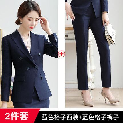 【新作】【送料無料】 ブルーチェック柄長袖スーツパンツ2020秋冬新プロウェアマルウェアホワイトカラービューティーサロンオーバーオール-アリババ ロング オータム 秋物 ウィンター 冬物 12b352977864517