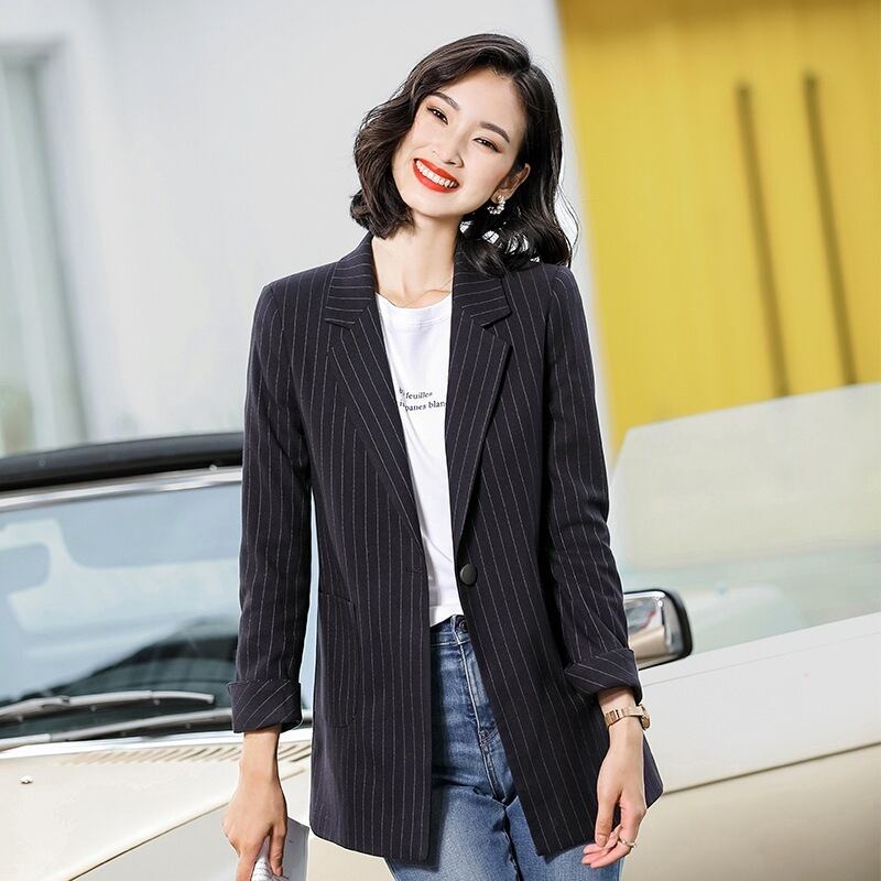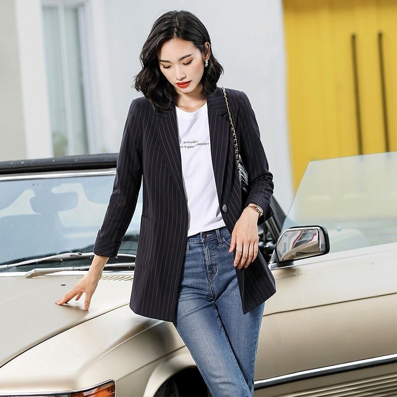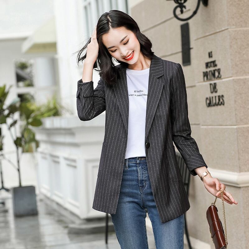 【新作】【送料無料】 ストライプの小さなスーツジャケット2020秋と冬の新しい婦人服ルーズウエスタンスタイルのプロの女神ファンスーツ-アリババ オータム 秋物 ウィンター 冬物 12b316714954863