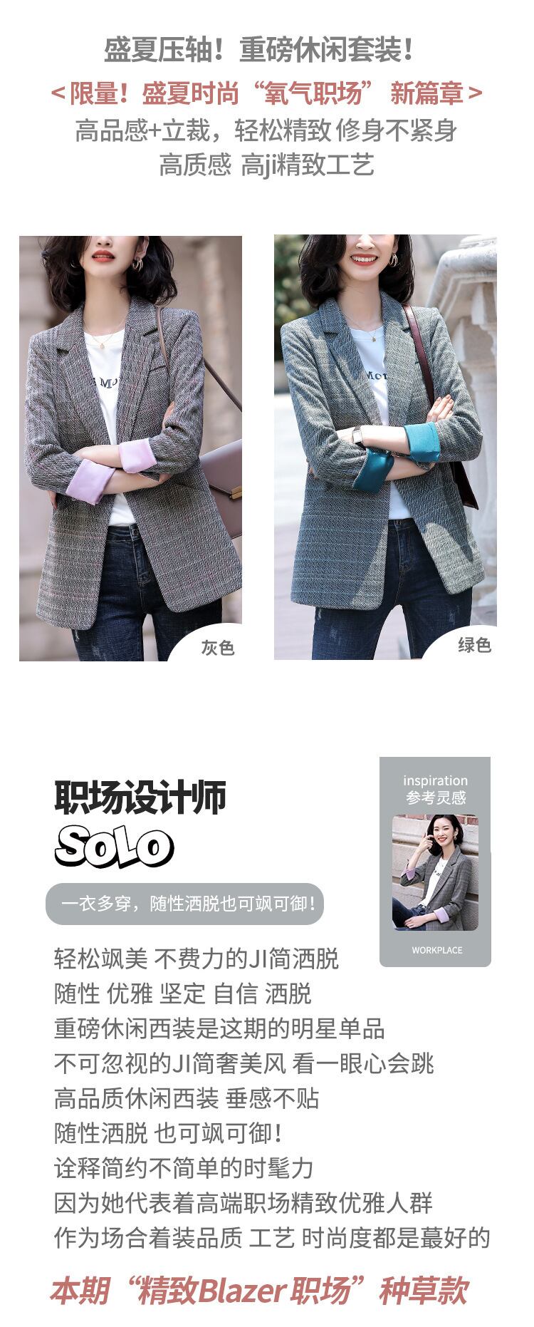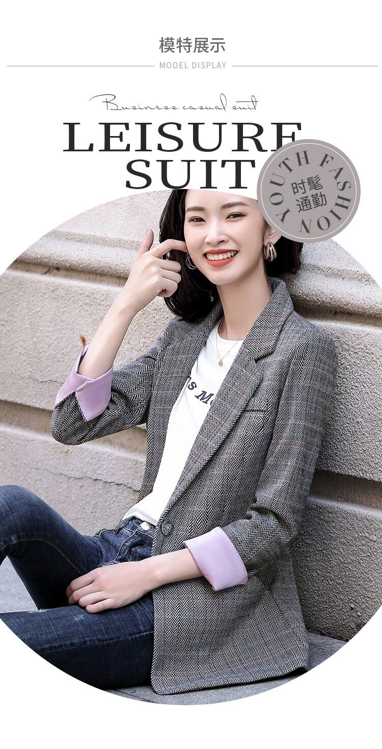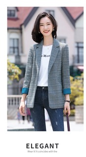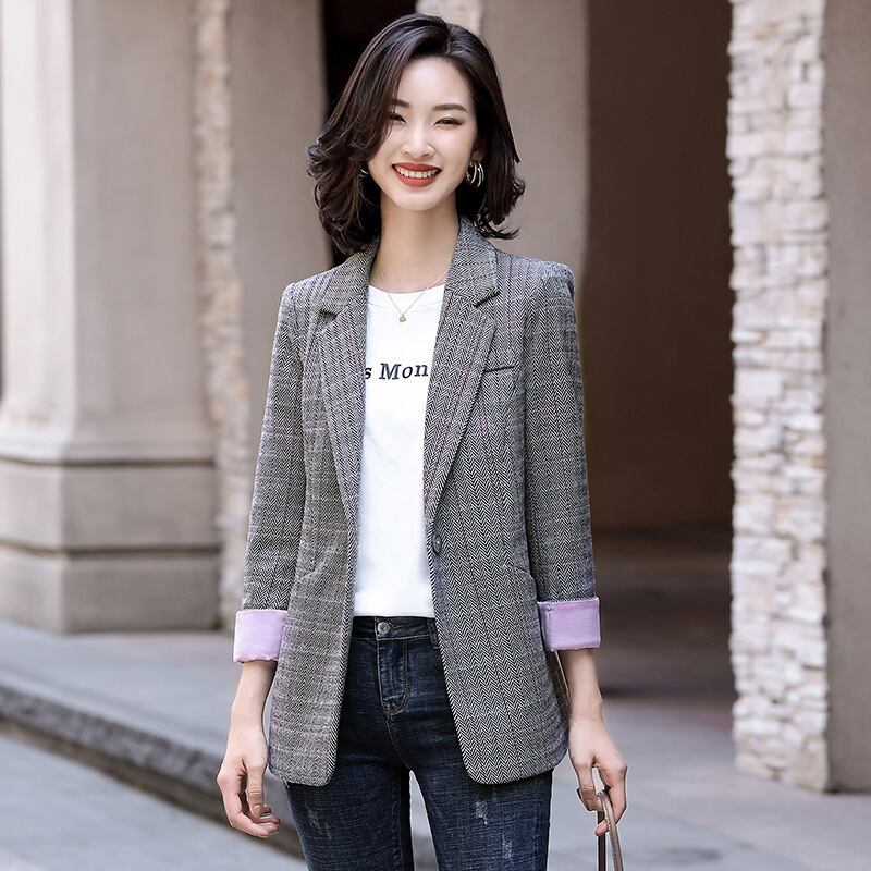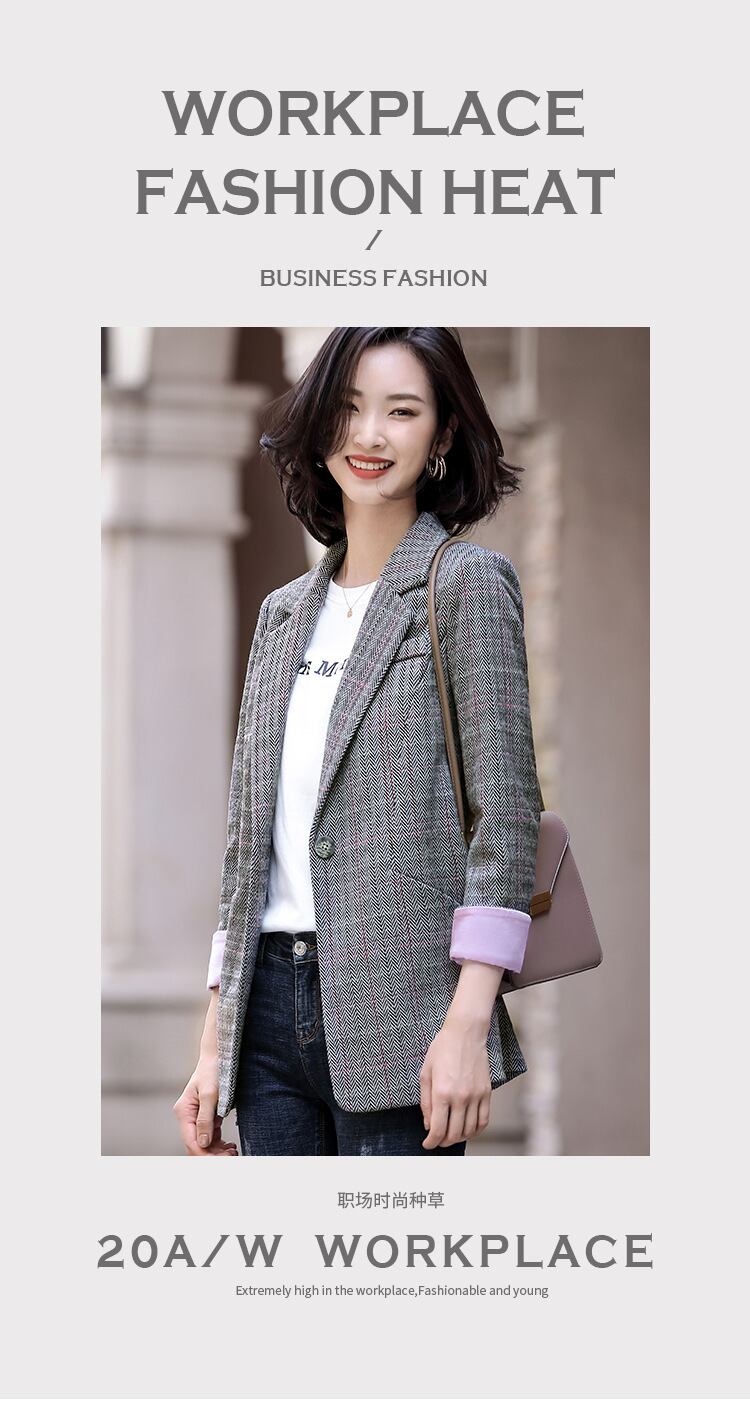【新作】【送料無料】 2020年秋冬新作グレーチェック柄長袖スーツレディースカジュアルレトロスタイル通勤OL外気質スモールスーツ-アリババ ロング オータム 秋物 ウィンター 冬物 12b344523486715