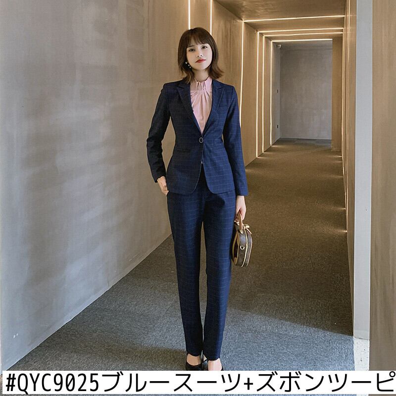 【新作】【送料無料】 格子縞のスーツのズボン女性の2020年秋と冬の新しいプロの服ホワイトカラー社長インタビュー大学生の作業服-アリババ オータム 秋物 ウィンター 冬物 12b366807572606